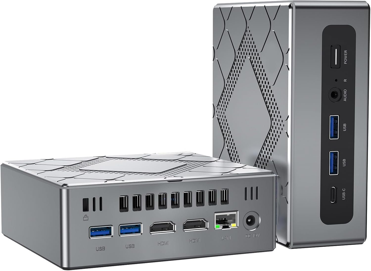 【Save Space & Say Goodbye to the Bulky Tower】 Micro PC is equipped with WiFi 6 and Bluetooth 5.2 technology, which greatly facilitates establishing a stable wireless connection and enjoying your work and life more. The CK10 small PC features a compact design: it measures 13.7cm x 12.7cm x 5cm, weighs only 540g (the size of two mobile phones) and can be mounted to the back of a monitor or TV with a VESA mount.