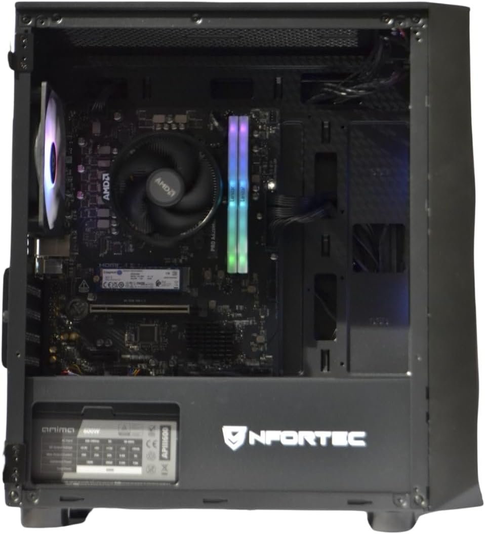 TrendingPC presents this powerful new PC Gaming, which has an innovative AMD Ryzen 5 8600G processor which is designed to move the heaviest applications without getting ruffed. In addition, this computer has an AMD Radeon 760M (integrated) graphics ideal for enjoying all current games in FullHD in amazing quality. Its DDR5 RAM and NVME storage, make this PC your ideal companion for everyday life, with which you can navigate smoothly, edit video, photos, etc… The very careful aesthetics, with RGB, and the high quality materials, make this computer the perfect purchase. -Nfortec DYS Black Enclosure -Silent Power 600W 12cm Performance -AMD Ryzen 5 8600G Processor Up to 5GHz in turbo mode -Gigabyte A620M S2H DDR5 Motherboard -16gb DDR5 RGB 6000mhz -Storage 1TB M.2 NVMe PCIe 6000Mb/s Read and 6000Mb/s Read 00MB/s Write -AMD Radeon 760M Graphic Graphics -Wifi and Bluetooth Tp Link AX1800 -Windows 11 Pro
