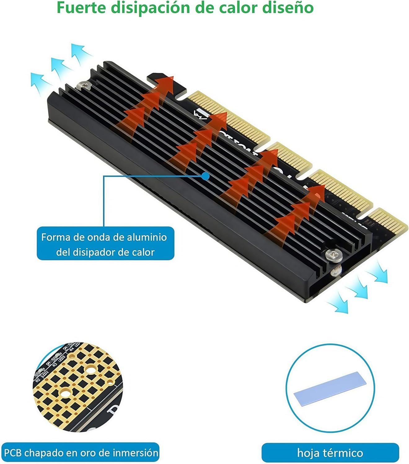 ADWITS PCI Express 3.0 4 x 8 x 16x to M.2 NVMe and AHCI SSD Adapter Card with Heatsink, No Support This card converts an M.2 interface (M key) into a PCIe 3.0 x4 x8 x16 compatible interface. Allows you to take advantage of the latest NVMe technologies to achieve performance up to 3470 MB/s Features Supports PCIe 3.0 4x 8GT / s Transfer Rate M.2 Media Key NVMe / AHCI M 2280/2260/2242 SSD Key / 2230mm Support for PCIe Motherboards 1.0, PCIe 2.0 0 and PCIe 3 .0 Support systems: Windows 10/8, Windows Server 2012 R2, Linux series, Fedora, SUSE, Ubuntu, Red Hat, with native drivers for NVMe and AHCI Note: Mac Pro 2009, 2010, and 2012 Models only support AHCI SSDs. Win7 and Windows Server 2008 R2 are not compatible with NNMe / AHCI SSDs List NVMe / AHCI SSDs based on PCIe (incomplete list) Samsung XP941, SM951 (NVMe or AHCI), SM961, 950 Pro, 960970 PRO EVO, PM951, PM961 INTEL 6 Series 00P 660P 760P WD BLACK NVMe ADATA XPG SX6000 PCIe HP EX900 Series NVMe Corsair Force M.2 Liteon T10 Series, MU X Series Kingston Digital PCIe NVMe M.2 Package Contents PCIe 3.0 to M.2 Adapter Card M Wrench with Heatsink x1 Thermal Pads x3 Screwdriver ador x1