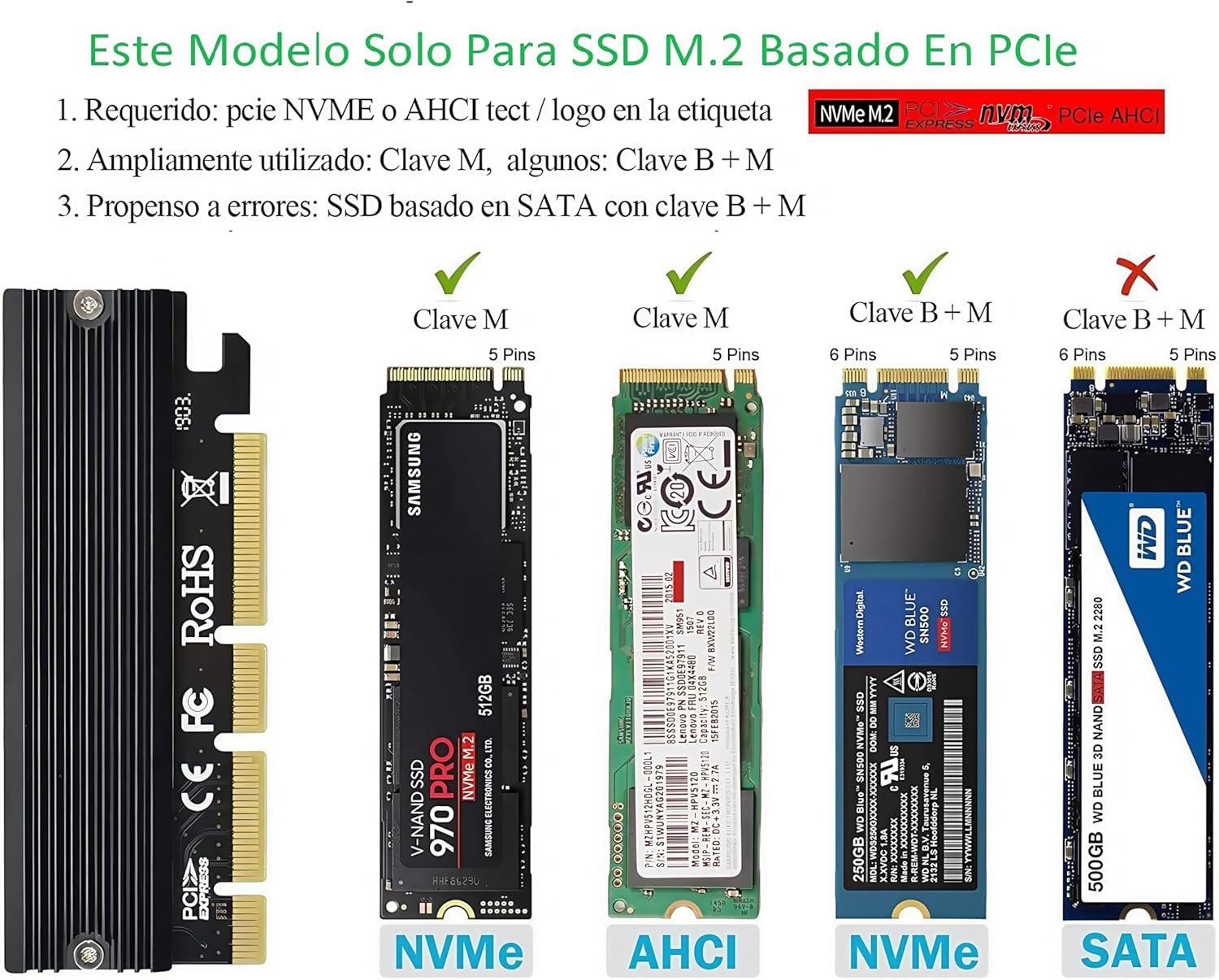 Supports M key, M.2 (NGFF) form factor 2230/2242/2260/2280, NVMe or AHCI protocol, PCIe-based SSD only, NOT compatible with any M.2 SATA based SSD or any Msata SSD