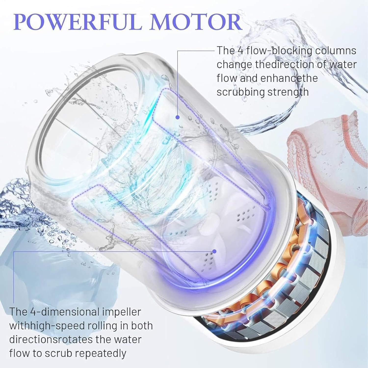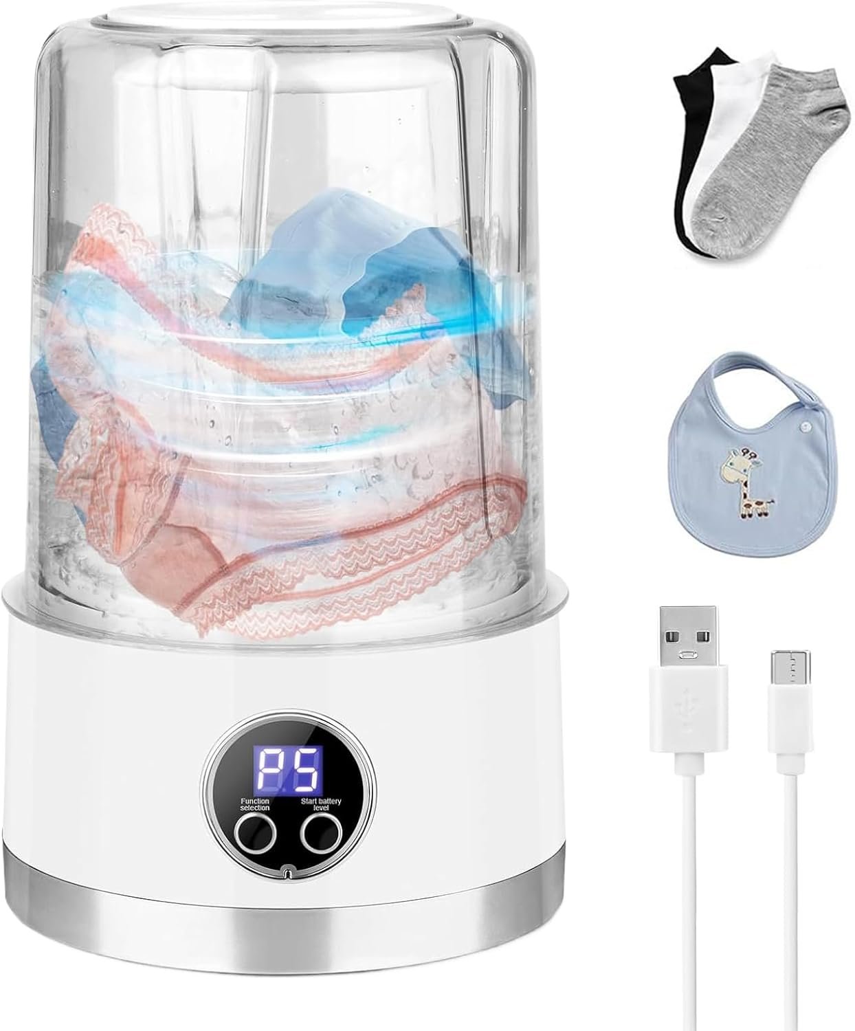 Portable Washing Machines Mini Rechargeable, 1L Capacity for Underwear, Socks and Baby Clothes, Washing with Long Lasting Battery, Ideal for Travel and Small Spaces