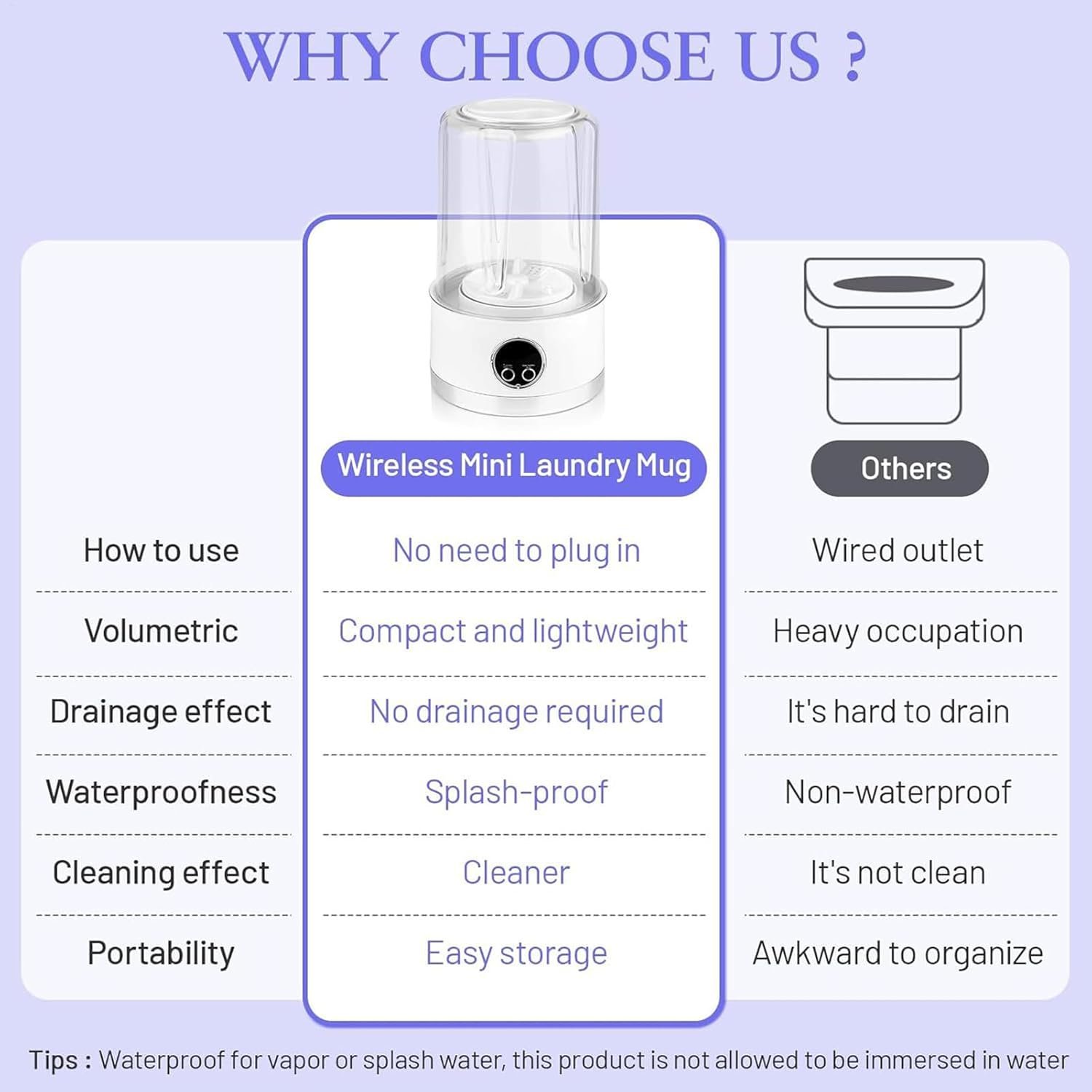 Diseñada para brindar comodidad, esta de ropa interior de 1 litro proporciona una limpieza profunda para ropa interior, calcetines, prendas de niños pequeños y artículos para mascotas. Gracias a su función recargable y sus dos modos de limpieza, ofrece un lavado completo. Perfecta como electrodoméstico portátil, se bien a apartamentos, residencias universitarias, hoteles, autocaravanas, viajes de campamento y baños pequeños donde el espacio es limitado.
