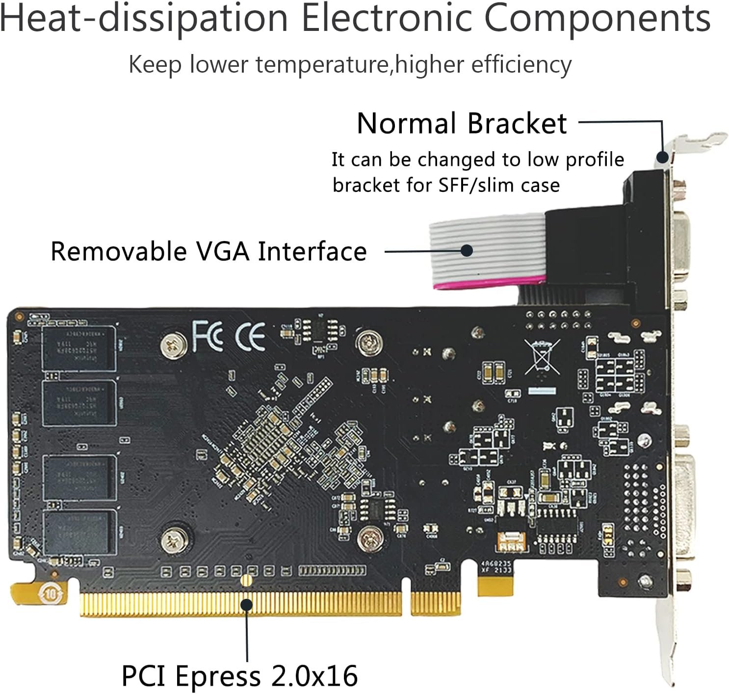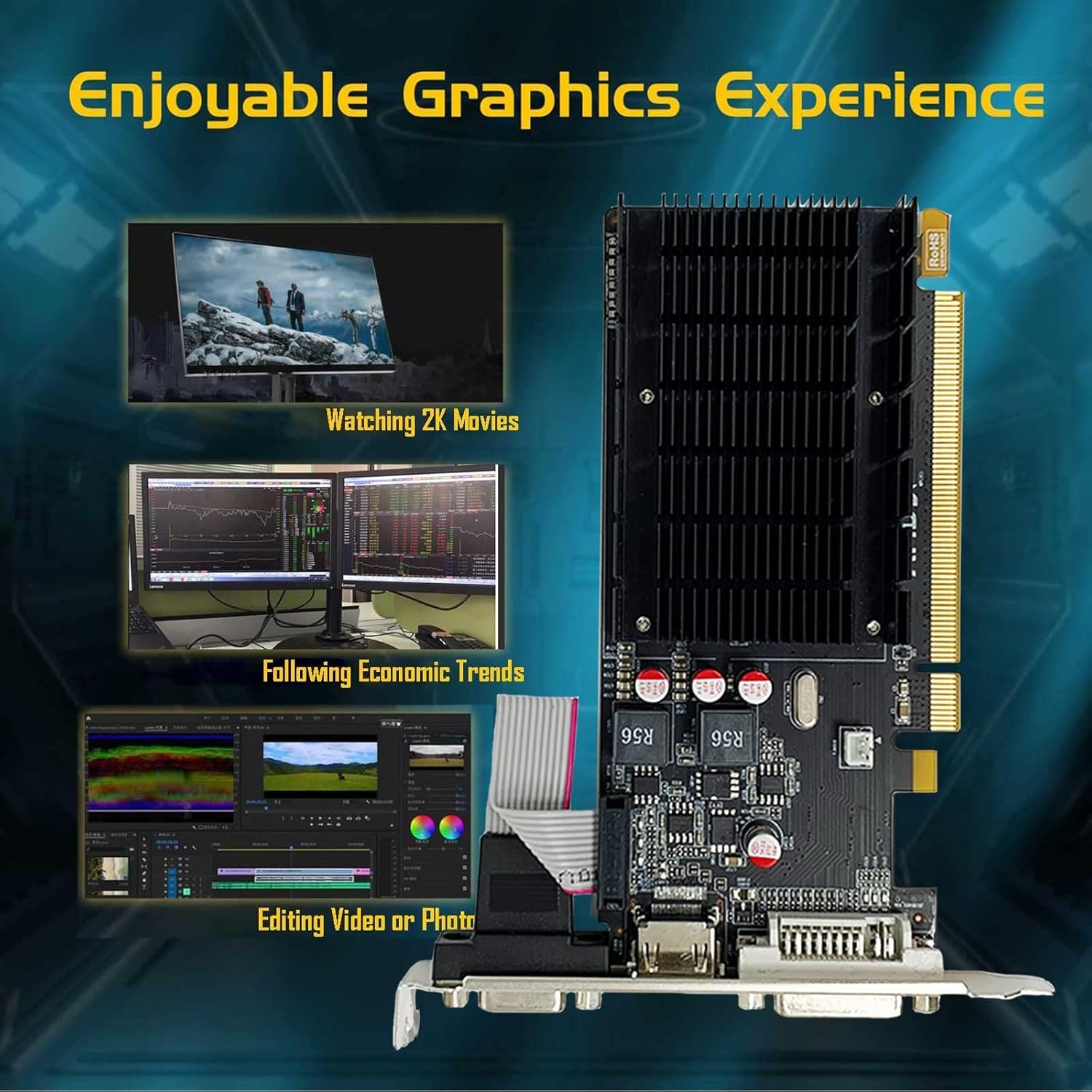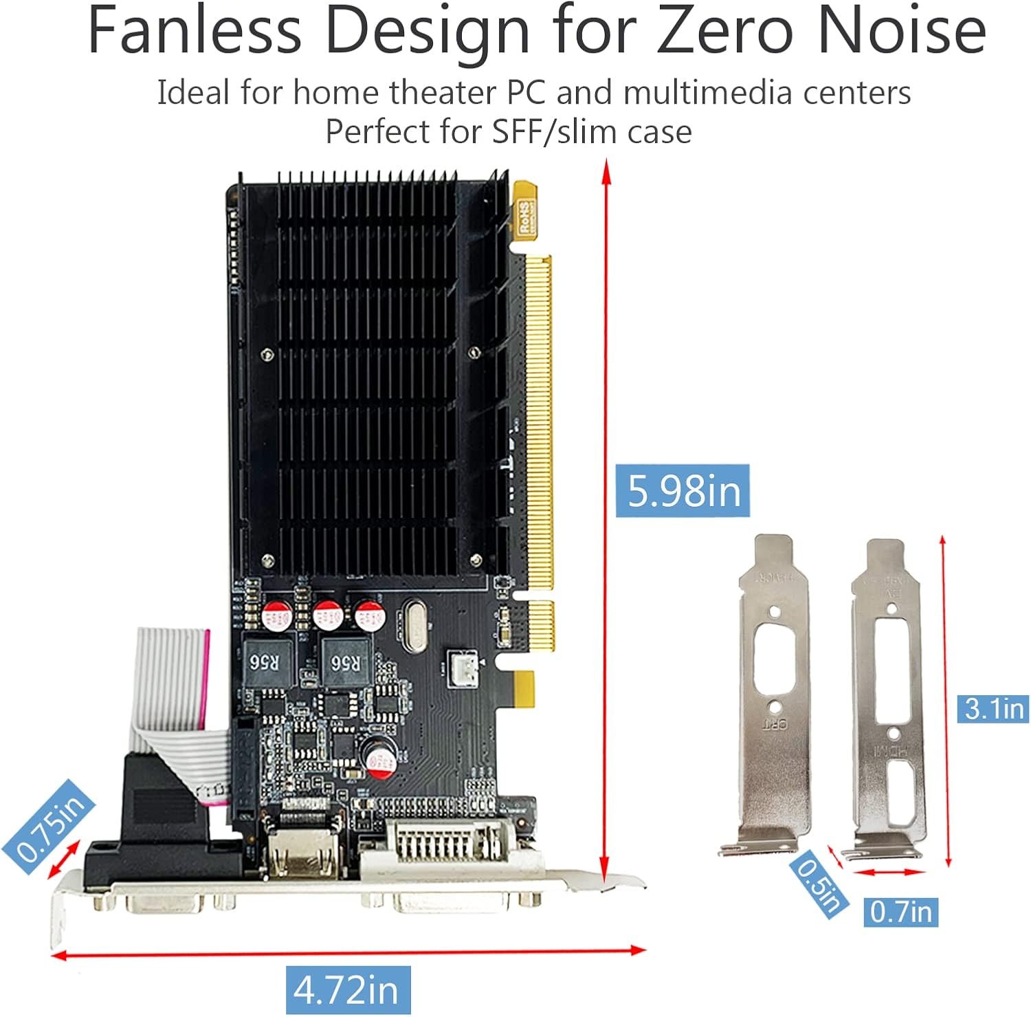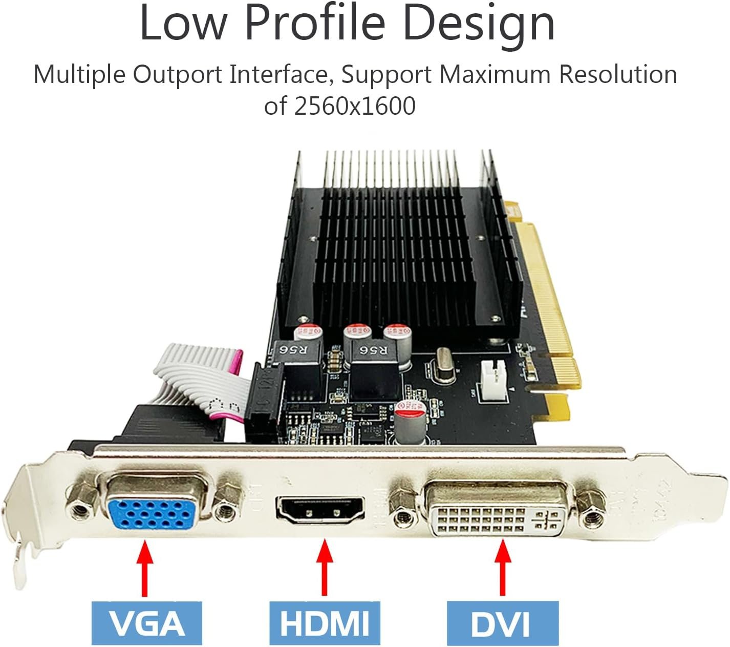 Low Profile Design Computer graphics cards are small, save more space and easy to install, plug and play. They are designed for full-size installations and can also build a compact PC system, even compatible with ITX enclosures. This low-profile, energy-efficient card improves multimedia performance, expands your desktop, and speeds up applications.
