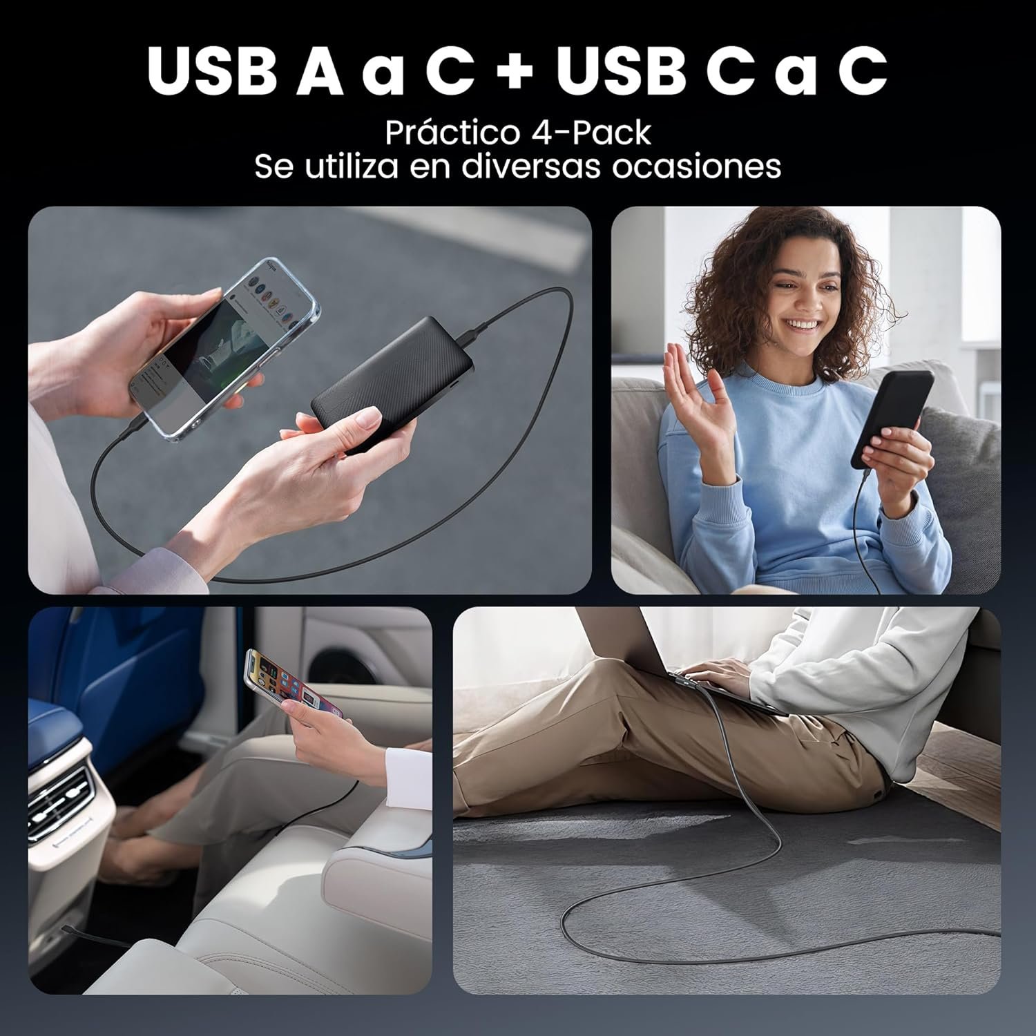 【High quality/price ratio】One purchase solves all charging needs, combination of 4 packs with high value for money. The combination of USB A to USB C and USB C to USB C is convenient and worry-free, suitable for multiple people to use simultaneously, meeting their charging needs in different scenarios.