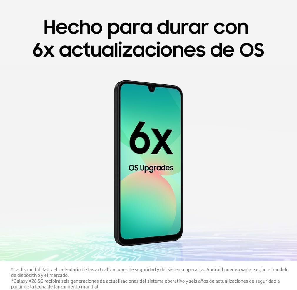 Don’t miss a thing: Catch up on 6 generations of OS updates and 6 years of security updates to keep your Galaxy A26 5G safe and performing at its peak