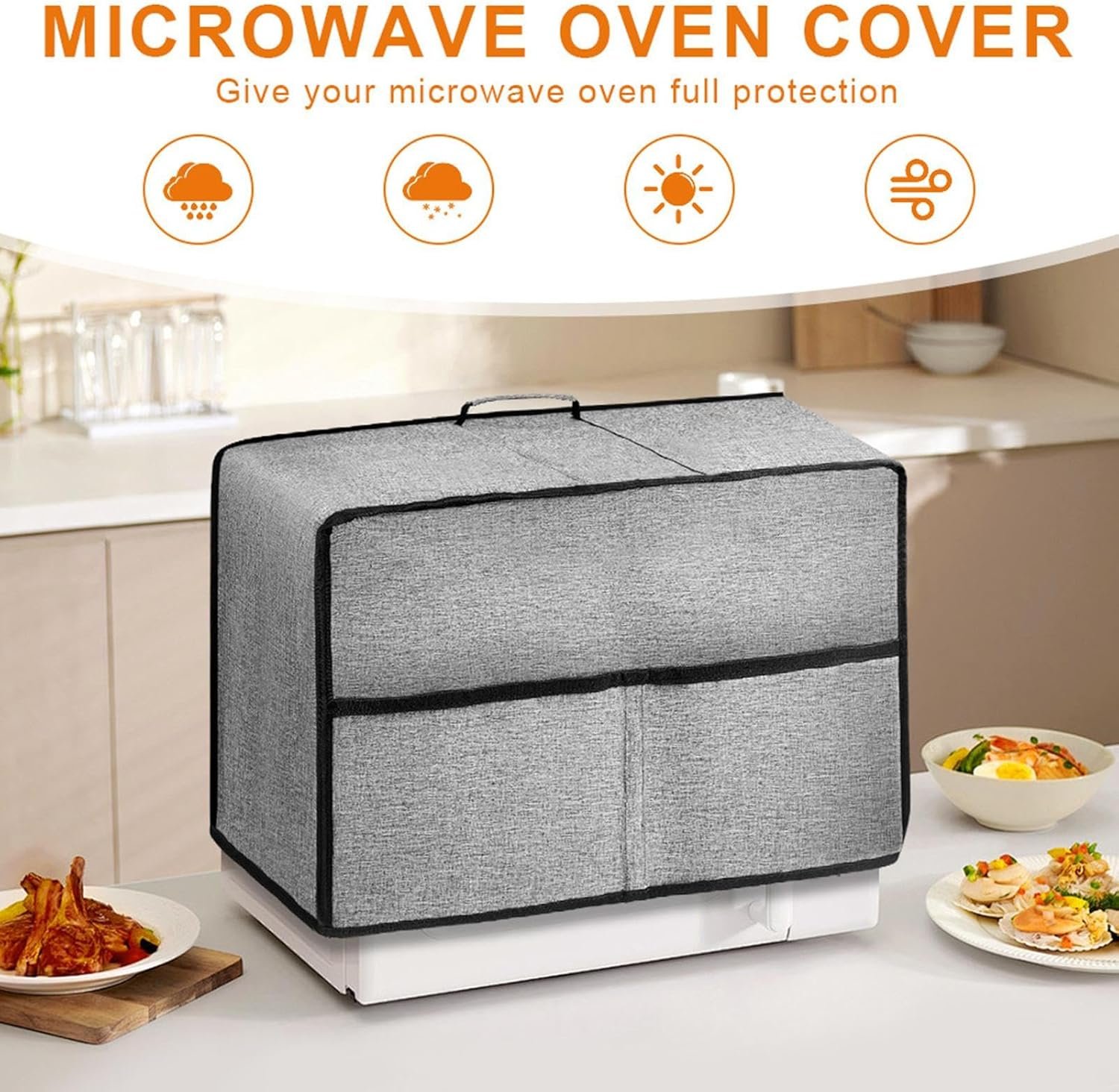 EFFICIENT UTENSIL STORAGE: Microwave cover offers a functional two-compartment arrangement for rational utensil organization. It allows you to effortlessly reach frequently used items and maintain order thanks to its built-in organizer and front pocket, useful during meal prep for a cleaner kitchen environment.