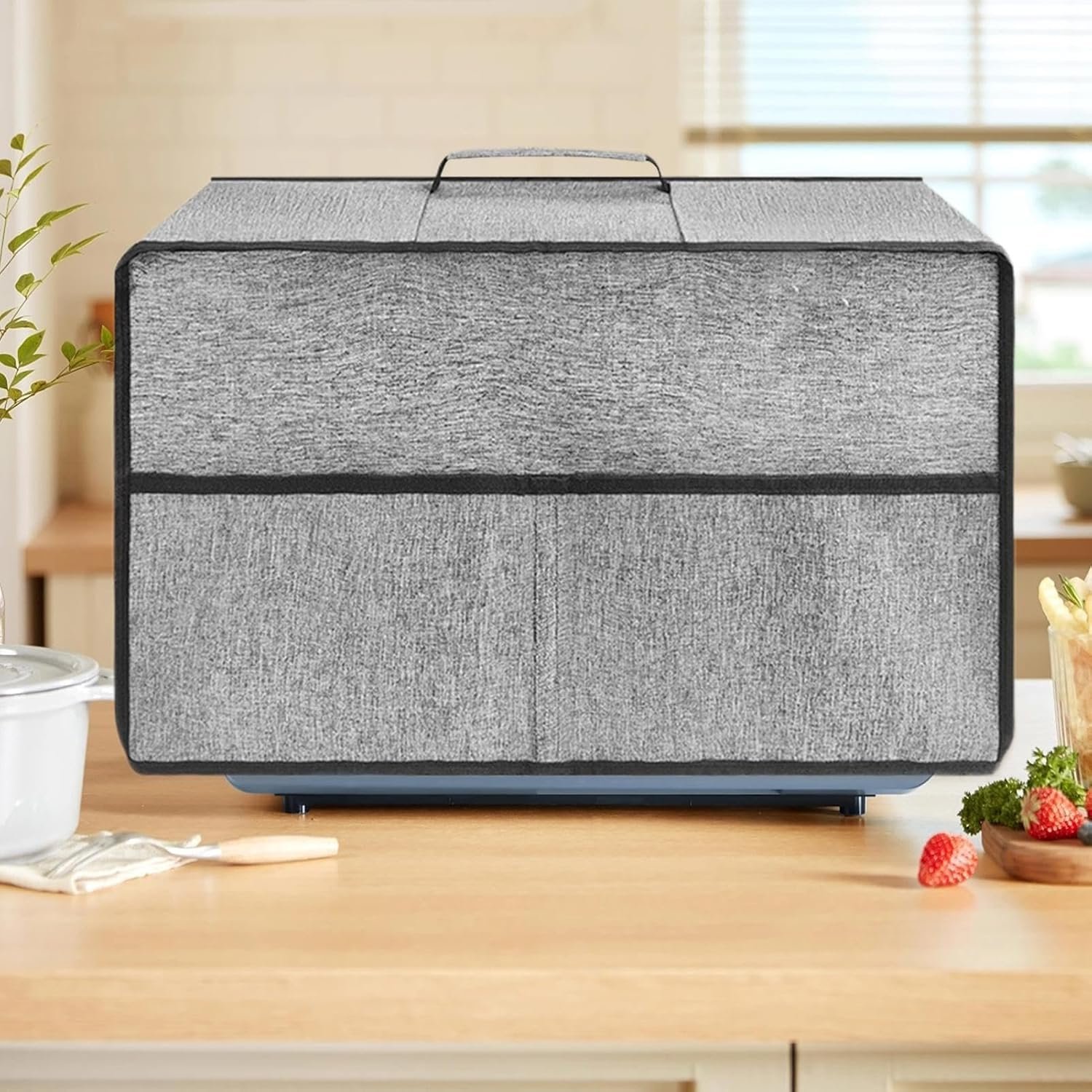 HANDLE FOR CONVENIENT MOBILITY – These covers are constructed with a convenient reinforced carry handle and an easy lift design, allowing for smooth moving and storing of appliances. Its simple style integrates effortlessly into various home decorations, increasing practicality without sacrificing aesthetics and continuous protection against indoor atmospheric agents.