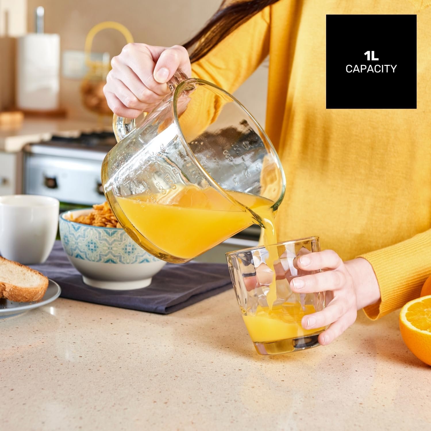 【LARGE CAPACITY TANK】It has a 1 litre graduated glass jug with enough capacity to prepare several servings of juice in a single extraction.