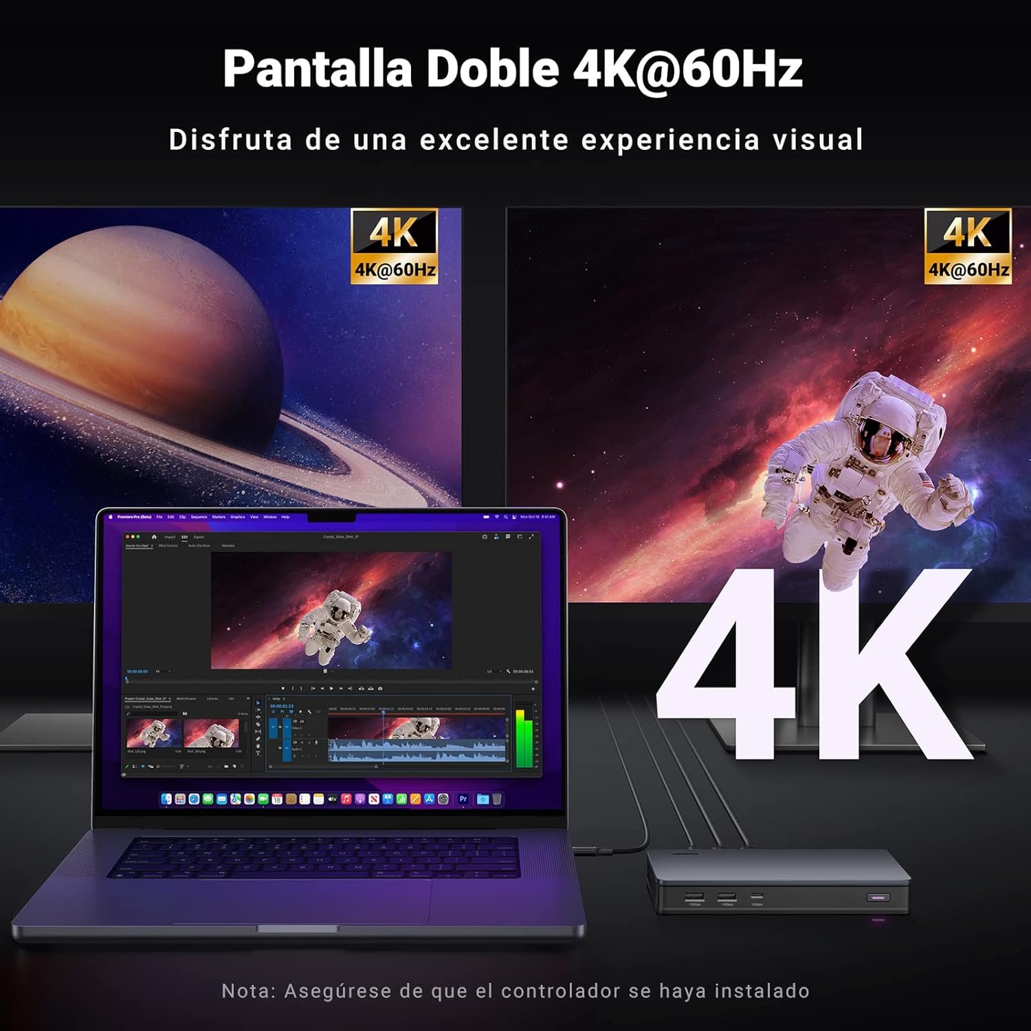 [ 4K@60Hz Dual Display ] With 2 HDMI ports and 2 4K@60Hz DisplayPort ports, this DisplayLink to multiport docking station allows you to connect 2 4K@60Hz monitors to your MacBook and each monitor can display different content to make multitasking a breeze.