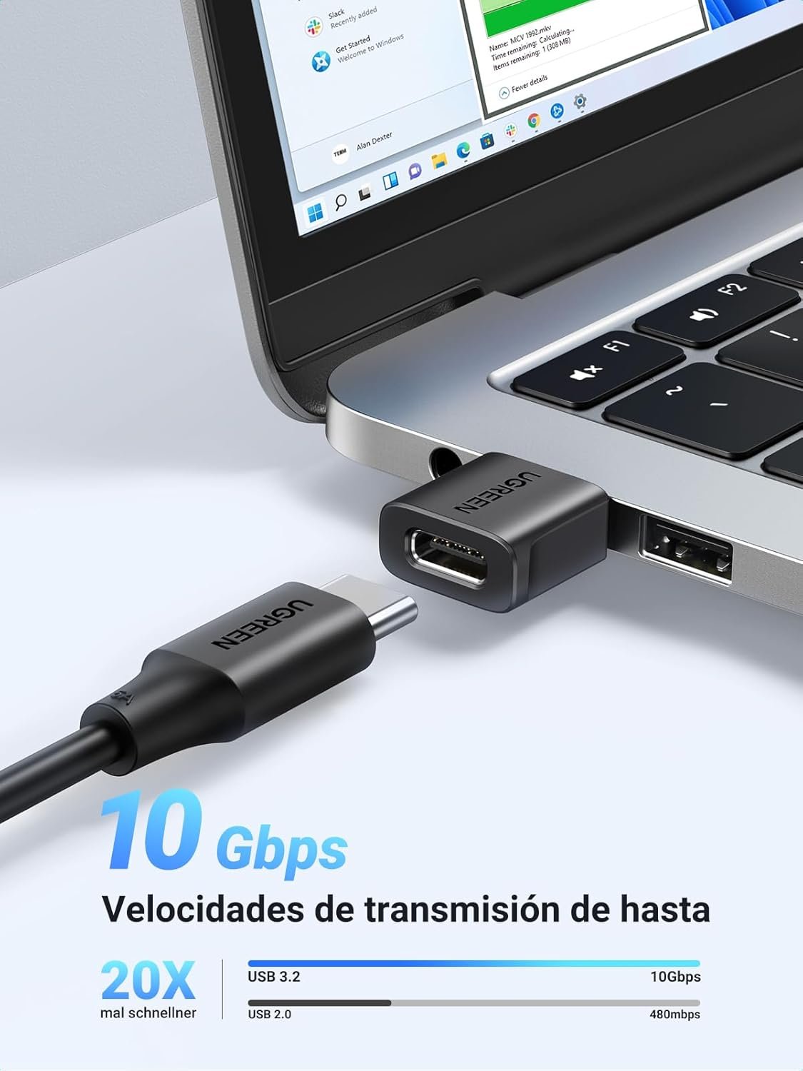 [ Fast Charging & Data Sync ] USB to Type-C 3.2 adapter provides transfer speeds up to 10Gbps, 20x faster than USB 2.0 (10Gbps speed is achieved when cable length is connected within 1 meter). It also supports Quick Charge 2.0/3.0, safe charging up to 3A and a maximum power of 18W. Note: If you can’t reach the maximum speed of 10Gbit/s, you can replace one end of the C-C cable, and then connect the device.