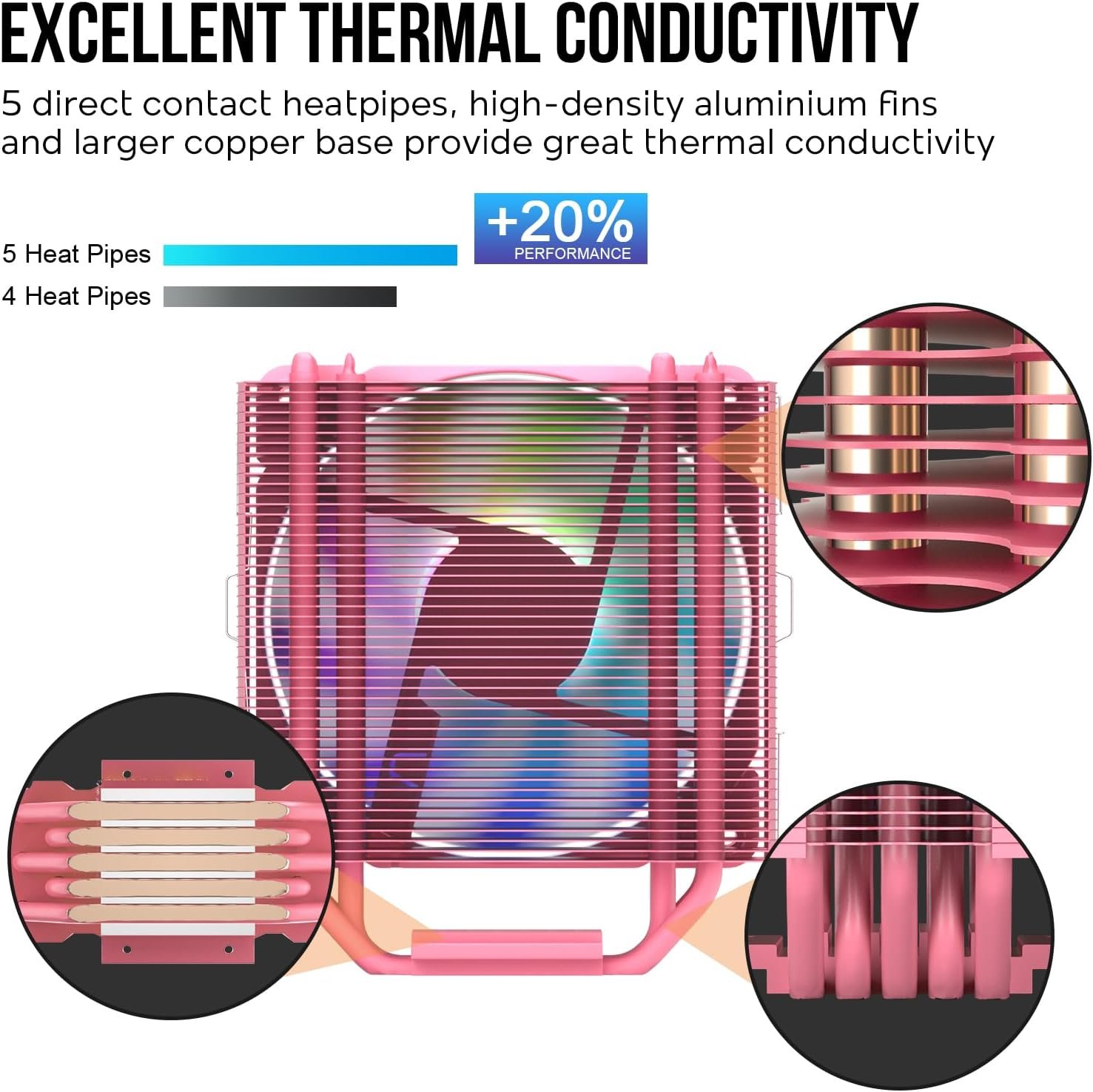 Vetroo V5 Pink CPU Cooler, 120mm 5 Addressable RGB & PWM Heat Pipes, 150W TDP Air Cooler for Intel LGA 1700/1200/115X AMD AM4
