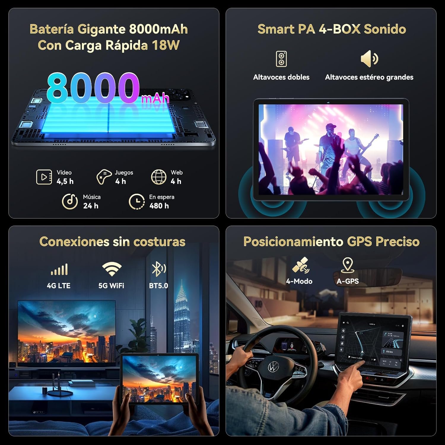 【8000mAh Battery + 18W Fast Charging】Android 15 tablet features a high density 8000mAh battery, which offers 12 hours of video playback and 8 hours of intensive gaming tablet (laboratory tested at 50% brightness), ensuring uninterrupted productivity during extended trips. With the included 18W PD fast charger, achieve 50% charge within 38 minutes, eliminating power issues. Smart PowerLock technology extends wait to 35 days for emergency access