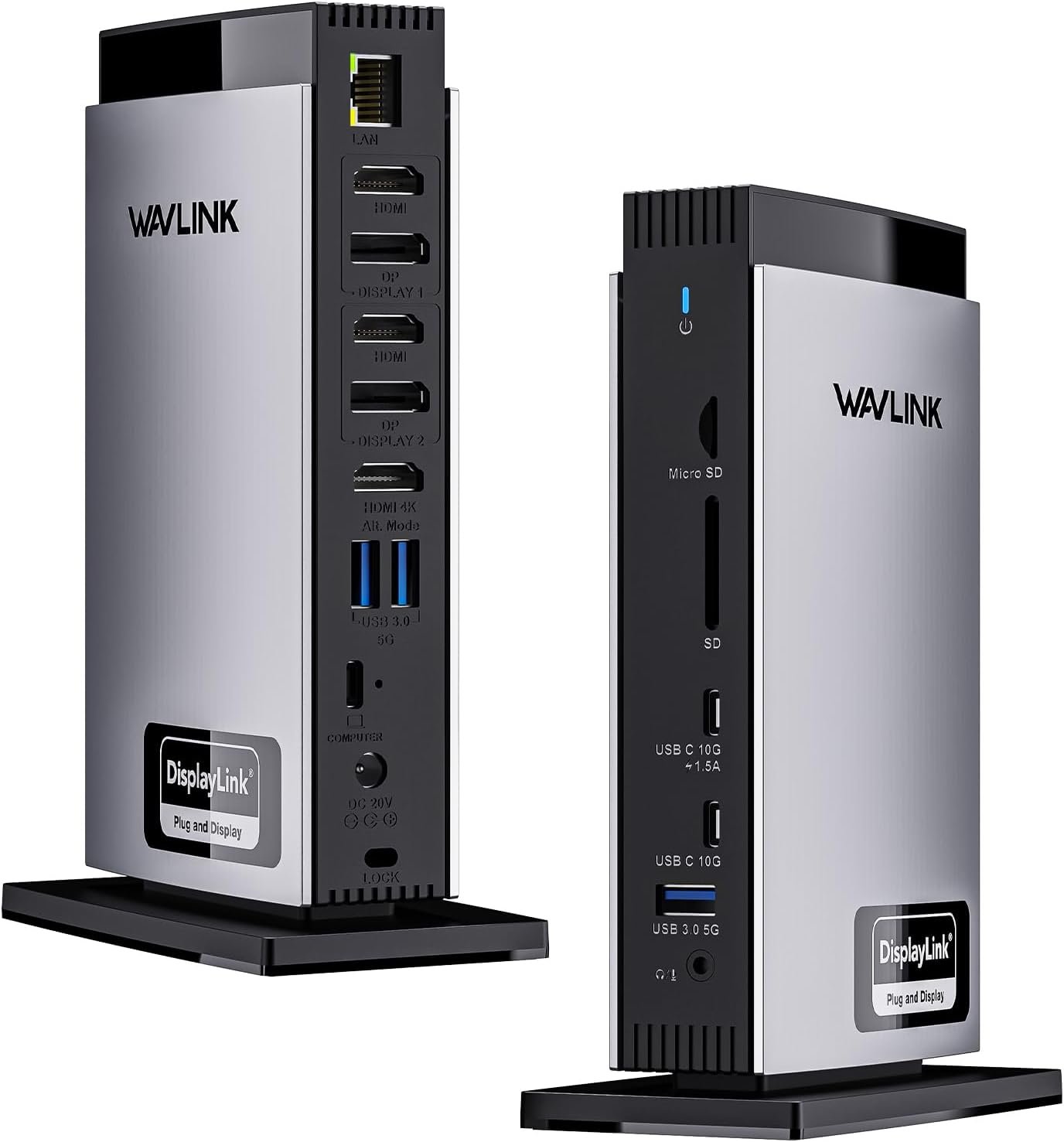 WAVLINK Displaylink Laptop Docking Station with 3 HDMI, USB C Dock Triple Display 4K60Hz, Charging 100W for M1 M2 M3 M4 Mac and Windows, 2DP, 5 USB Ports, 1Gbps Ethernet Port, Audio/Microphone, SD/TF