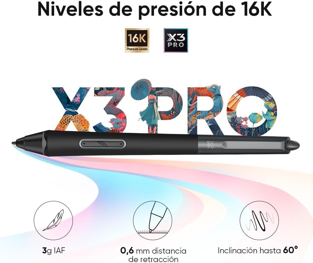 [WORLD’S FIRST 16K PRESSURE LEVELS] Introducing the X3 Pro Smart Chip Stylus featuring the industry’s first 16,000 pressure levels, 100% higher than its peers, the digital drawing tablet equips with this pen for more precise and fluid lines than ever before.