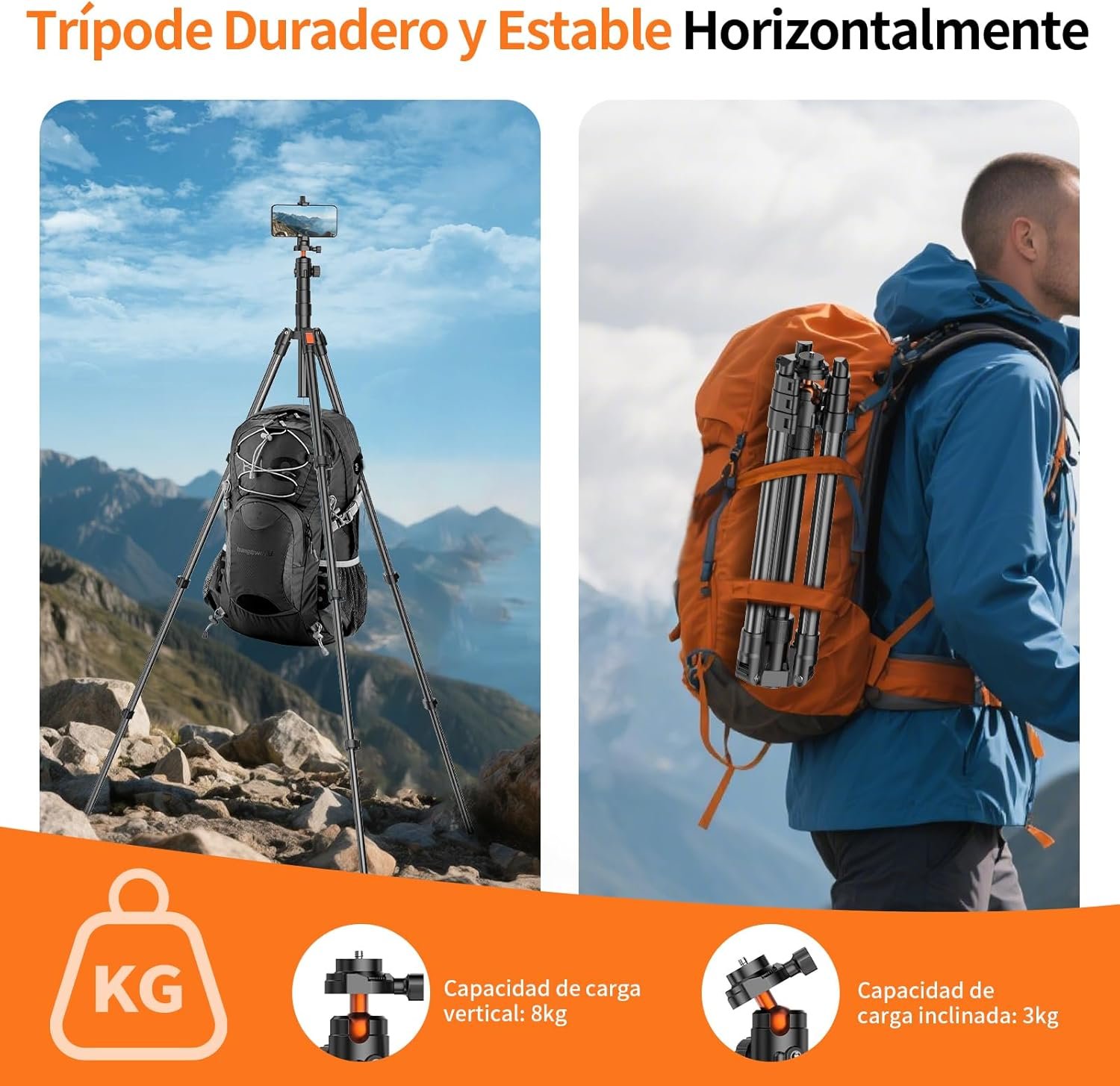 【Travel Tripod with Adjustable Height】This DSLR tripod features a three-section telescopic center pole, allowing flexible height adjustment up to 71 inches. Its foldable design allows for a compact size of only 36 cm and a light weight of just 1.05 kg. Includes a carrying case for easy storage and transport. This professional camera tripod is practical and stylish, ideal for stargazing, night scenery, fireworks, sporting events and outdoor activities such as mountaineering.
