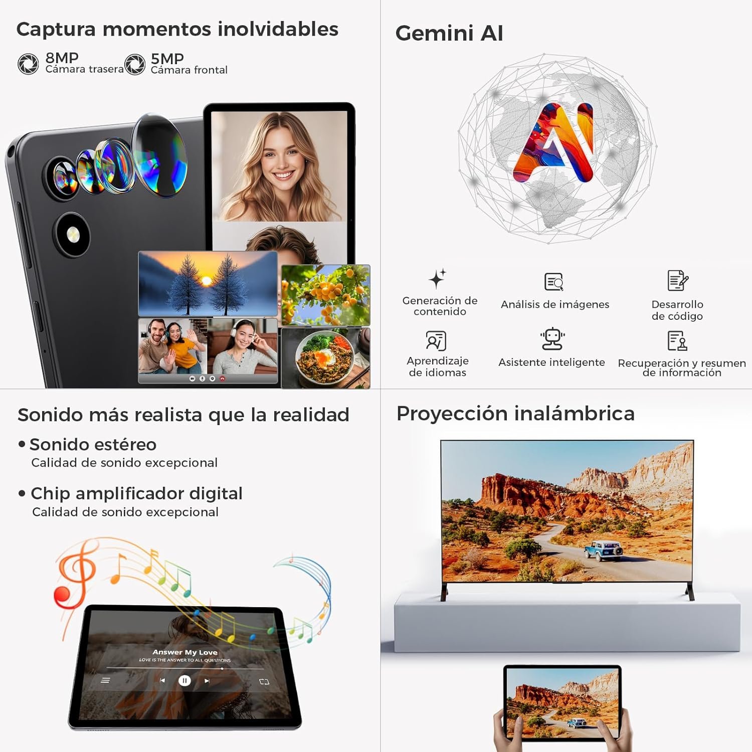 [Android 15 + Gemini AI+GMS]Tablet via a 2.0GHz Octa-Core CPU (2 A73 cores + 6 A55 cores) and AI chip, delivers 30% better performance than its predecessor, with about 6 times the computing power of AI. High-speed multitasking and app switching are also fluid. gone. This Android 15 tablet is GMS certified for stable and comfortable use. Popular apps like YouTube, Amazon can be installed freely, making it smooth for both everyday entertainment and commercial use.»