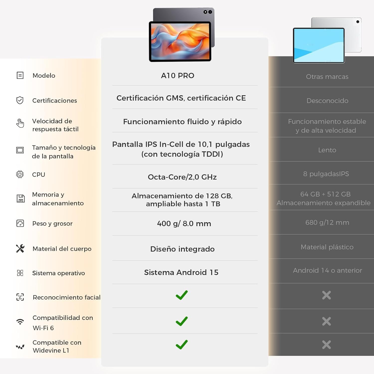 [Wi-Fi 6 + Bluetooth 5.2+Face Recognition] The A10 PRO tablet supports 2.4G/5G dual-band Wi-Fi, which improves transmission capabilities to obtain more stable network speeds. Bluetooth 5.2 enables stable pairing with peripherals such as keyboards and headphones.Facial recognition function provides secure and fast locking, ensuring privacy. ※Only supports deactivation of facial recognition.