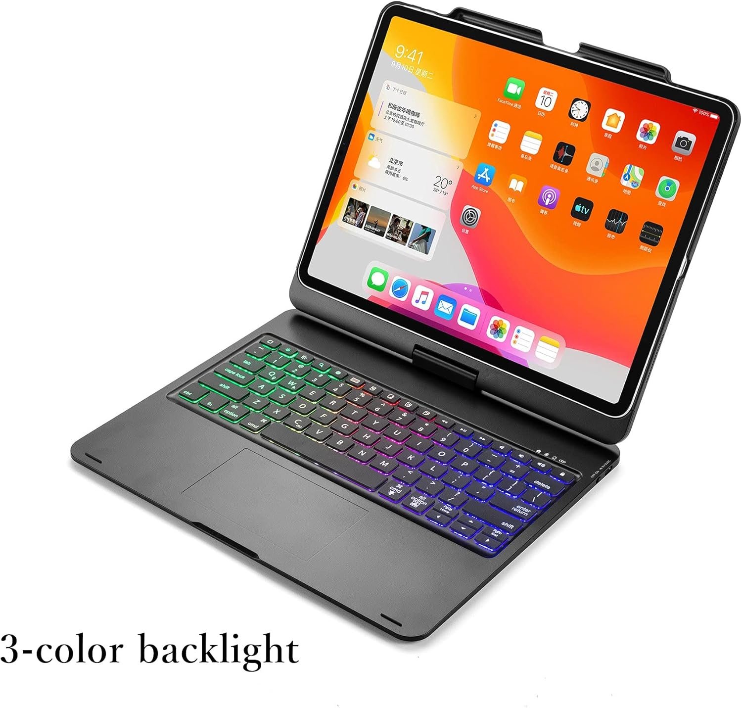 ★ 360 Rotating : The touchpad Keyboard Case can rotate by360 degree , has laptop-like well-spaced keys, backlit keys, shortcut keys and a built‑in trackpad . High performance 360 degree rotary backlit touch keyboard makes your tablet works better than a laptop
