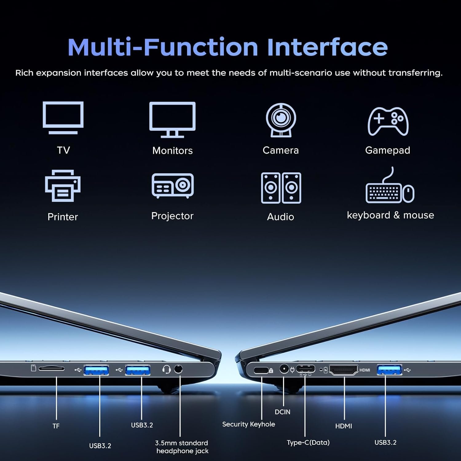 【Ultra-fast Connection】Download and navigate at lightning speed with ultra-fast 802.11 a/b/g/n&ac WiFi. Bluetooth 5.0 module allows easy synchronization with favorite wireless devices. Plus, the laptop comes with 2 USB 3.2 ports, a 3.5mm Type-A headphone port (data cable) and an HDMI port, supporting large-screen entertainment and meeting all your connectivity needs.