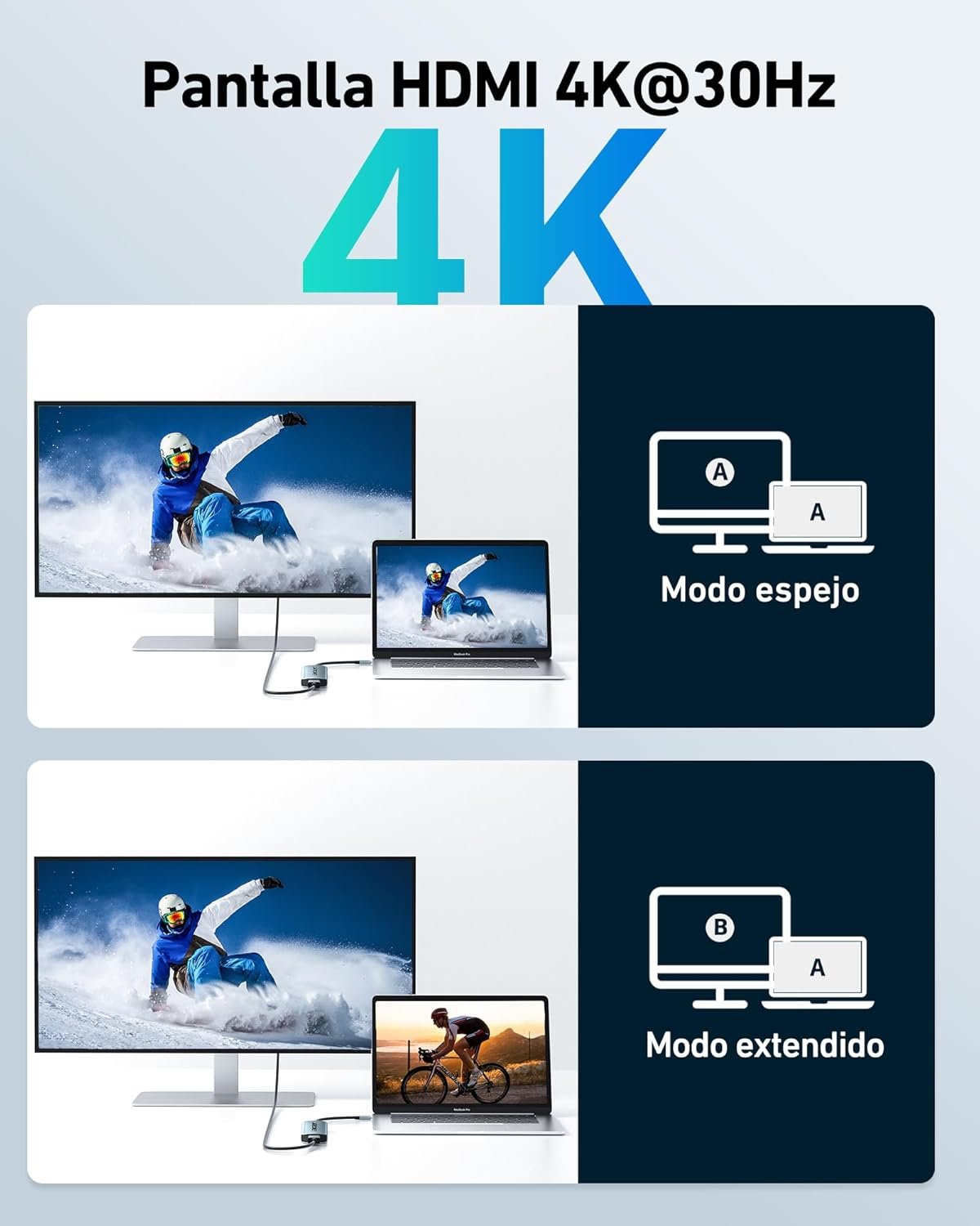 【7 in 1 Multiport Hub】acer USB C Hub is made of aluminum and expands a single USB-C port to 7 ports (1*HDMI 4K@30HZ, 2*USB 3.0 (USB 3.1 Gen1), 1* USB -C 5Gbps, 1* 100W PD Type-C charging port, 1* MicroSD card slot, 1* SD card slot. Expand your work from home, office or while traveling. Note: Connect the power supply to the PD port to provide sufficient power to the USB-C adapter.