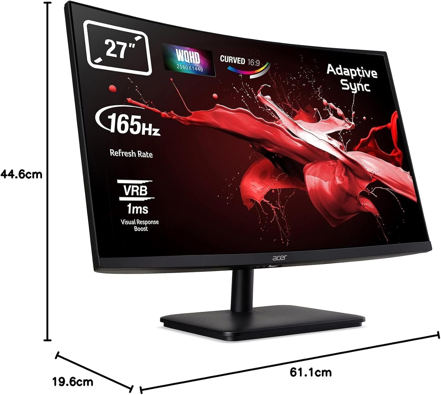 QUICK RESPONSE: The monitor has a refresh rate of 165Hz and a response time of 1ms to minimize blur and react quickly to what happens on the gaming screen like a true professional gamer