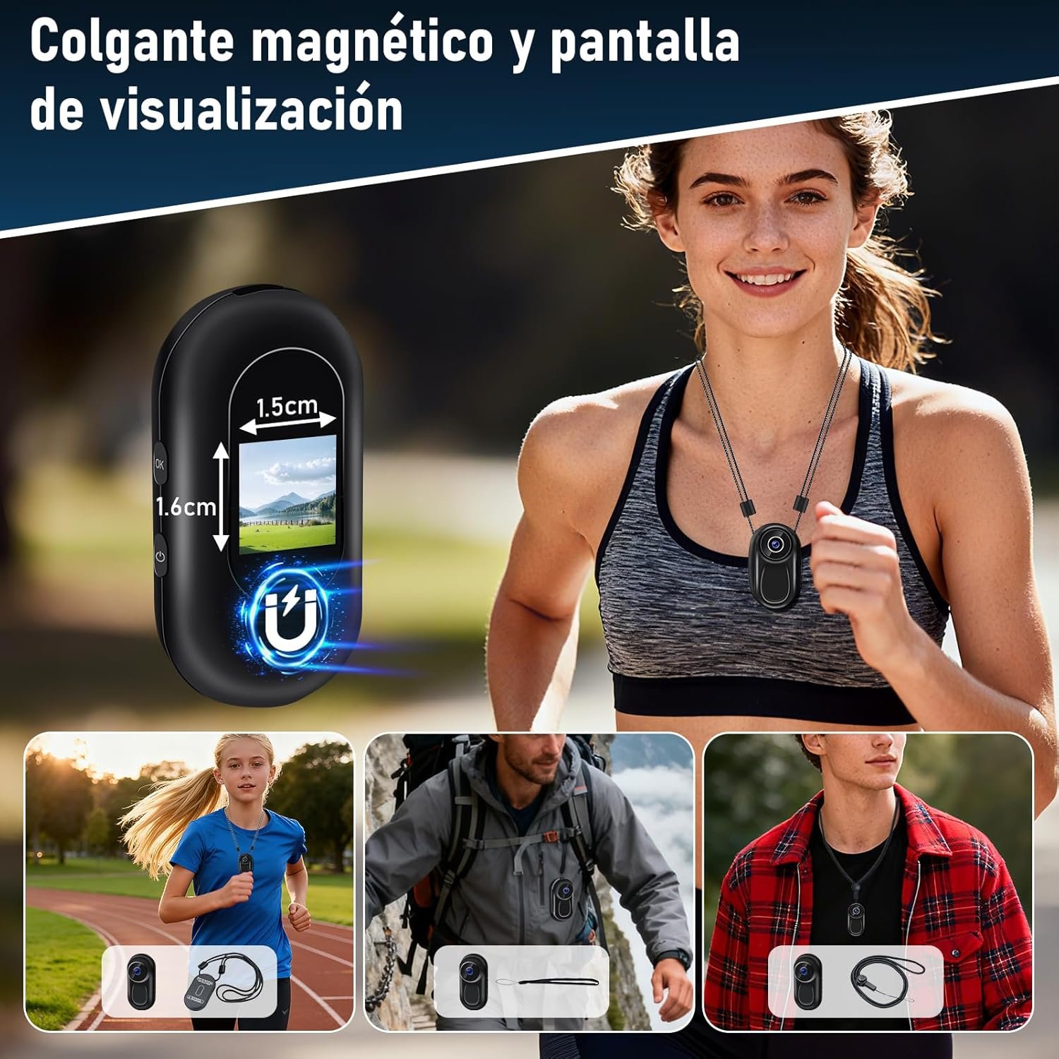 La cámara de acción mejorada cuenta con potentes imanes y viene con un cordón magnético, lo que permite su uso sin manos.