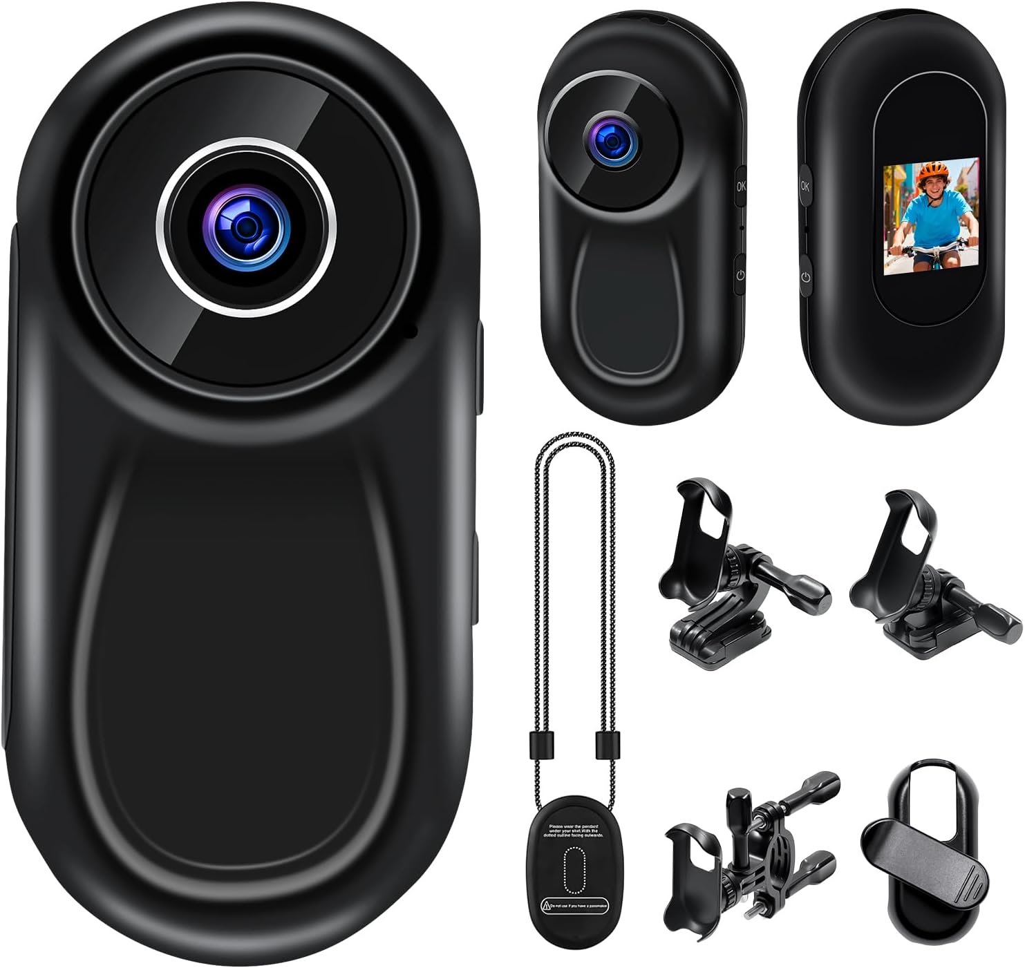 Magnetic Mount & Versatile Accessories. With a powerful magnetic base and a 360° rotating spring clamp, this portable camera effortlessly adheres to metal surfaces or clips to collars, pockets or belts.Seven additional mounting accessories ensure secure attachment to bicycles, motorcycles, helmets, etc.