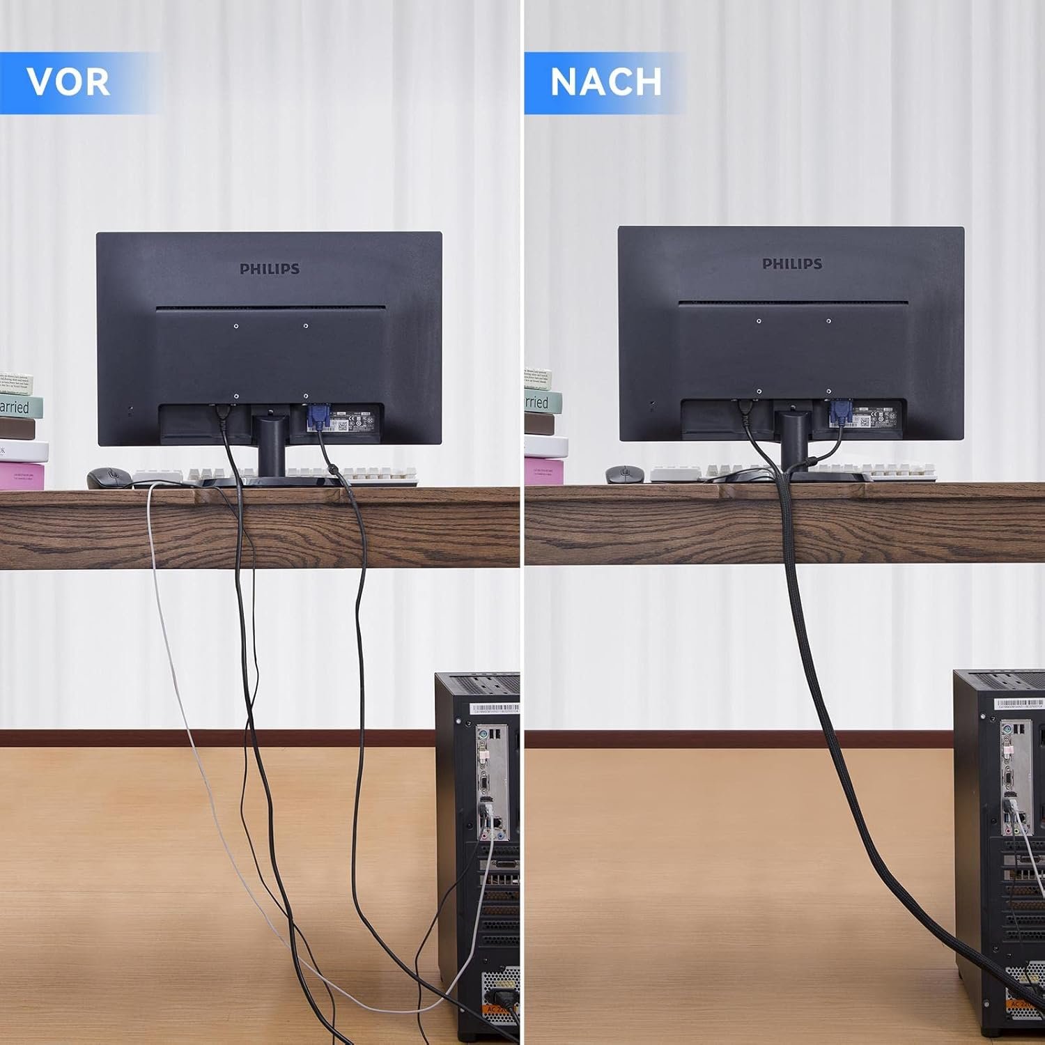 【VERSATILE & REUSABLE】 No more cable chaos everywhere! Suitable for a variety of cables such as: network cables, HDMI, monitor cables, power cables, USB cables, webcams, PC cables, etc. Our cable sleeves can be removed and reused at will.