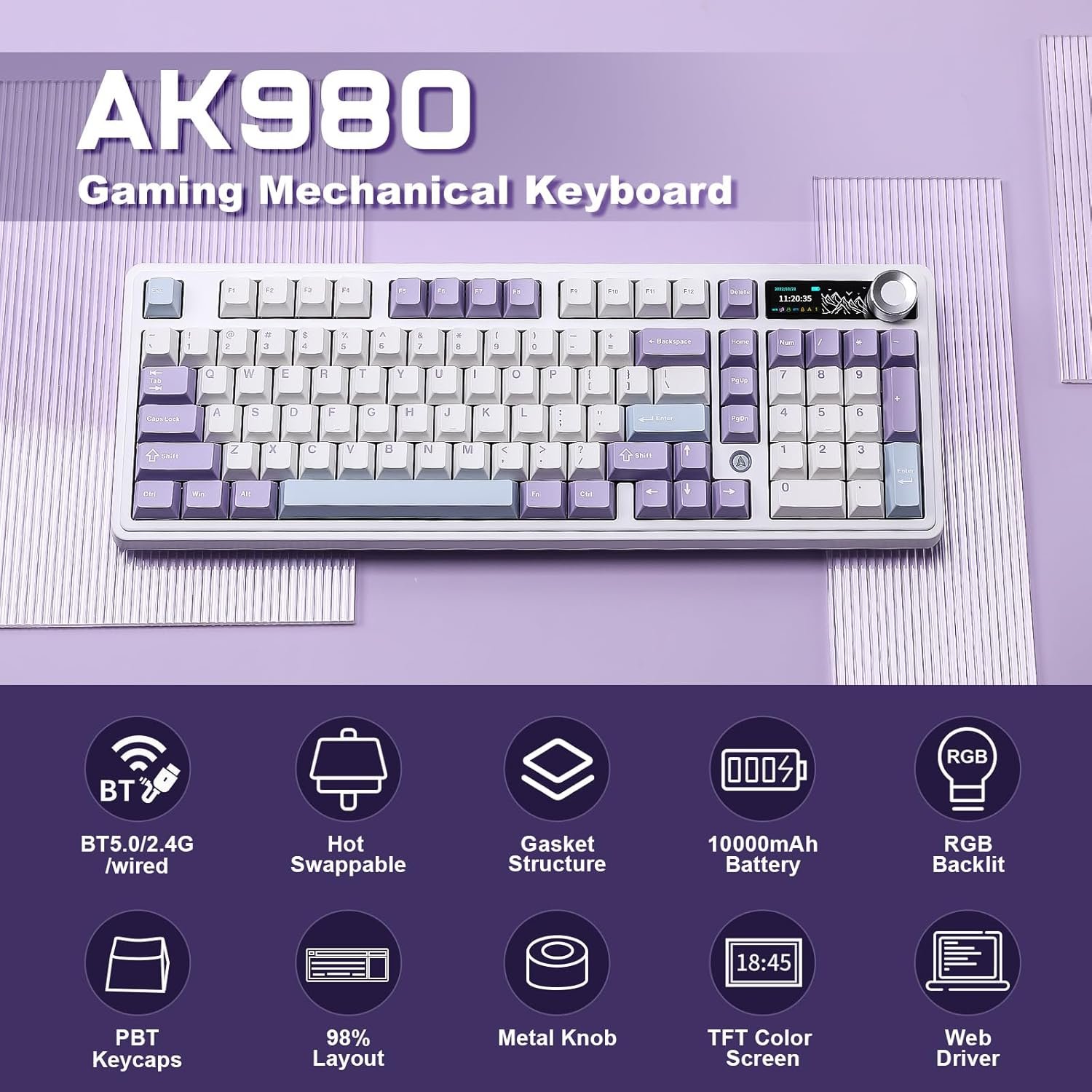 98% Keyboard layout: preserves the numeric keypad and commonly used function keys, such as F key area, arrow keys, etc., and the layout of the keys is more scientific and reasonable, according to the principle of ergonomics, optimizing some of the least used keys, so that the overall dimensions of the keyboard are more compact, saving desktop space, and at the same time, to meet the user’s daily needs for a variety of operations adores. , to improve work and play efficiency