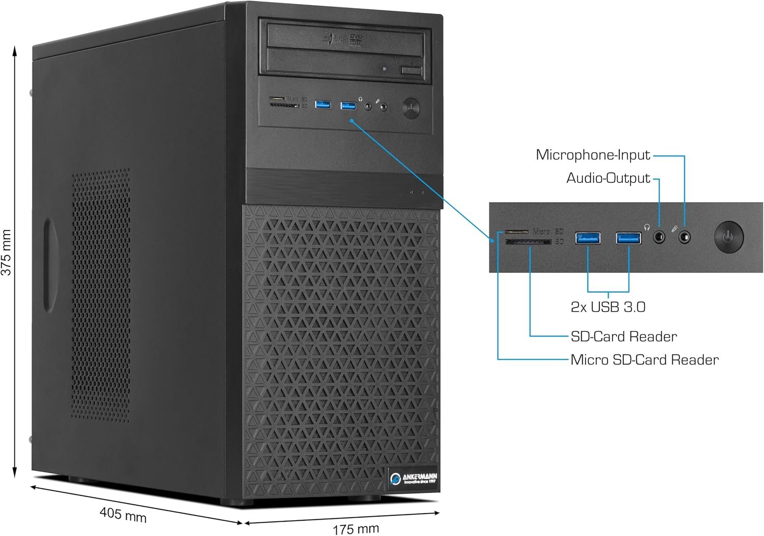 Ankermann Business Office Work V3 | Intel Core i5-14400F | Nvidia GeForce GT 740 4GB | 16GB DDR5 RAM | 1TB NVMe SSD | Windows 11 | WiFi & Bluetooth | MS Office 2024