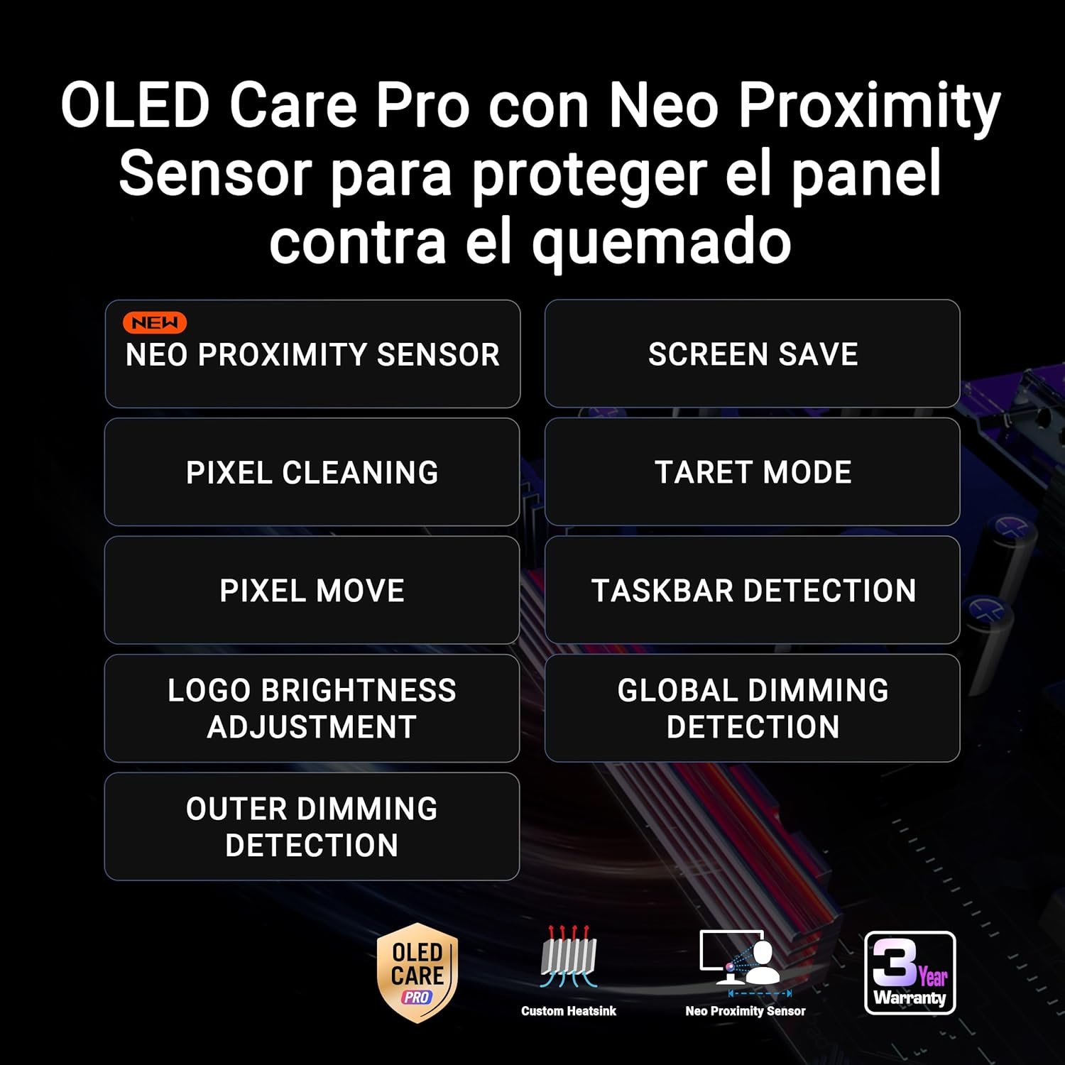 ASUS OLED Care Pro with Neo Proximity Sensor accurately detects when the user is absent and switches to a black screen to reduce the risk of burning