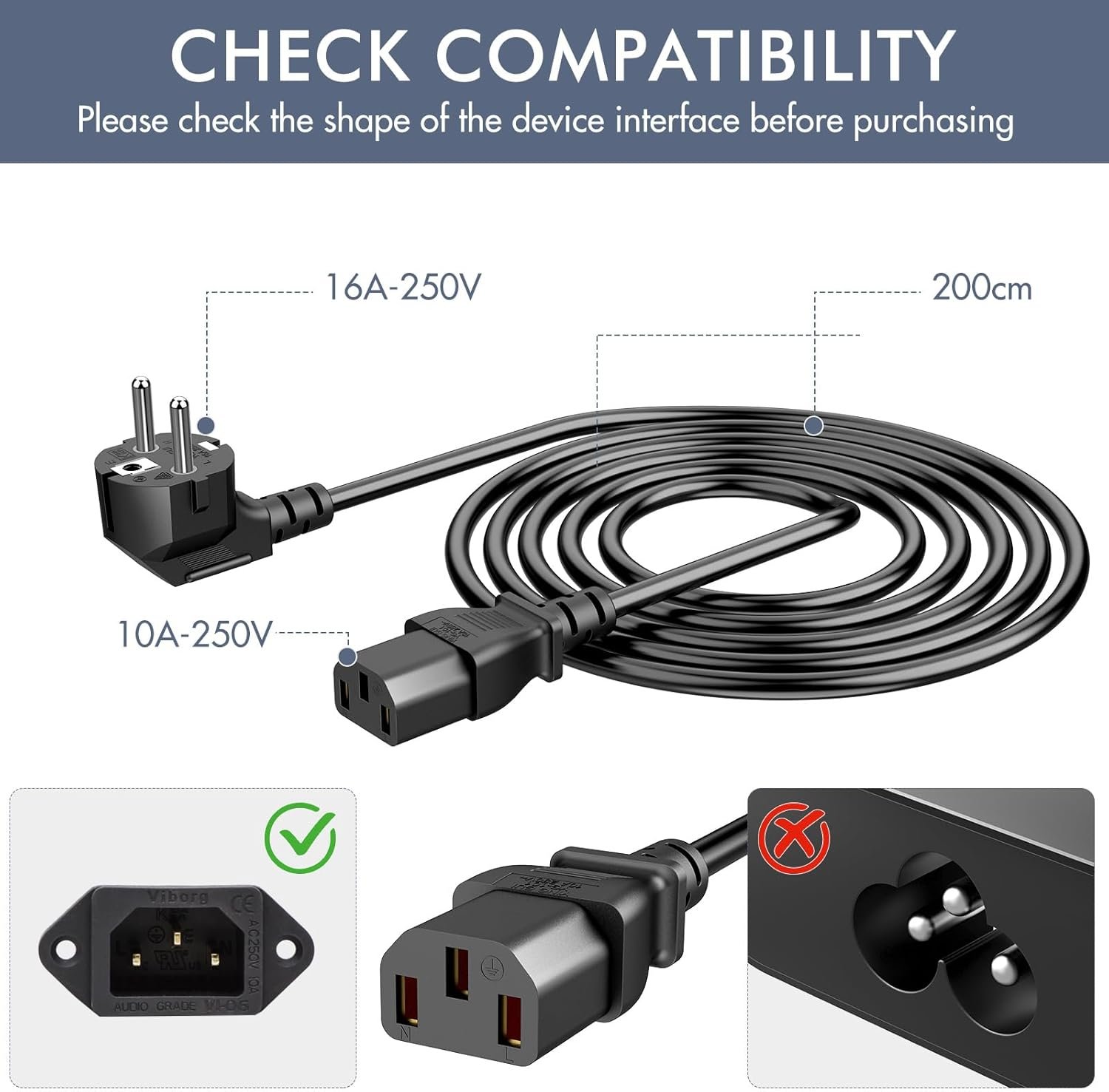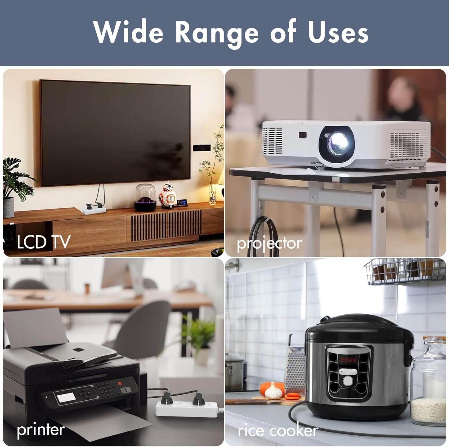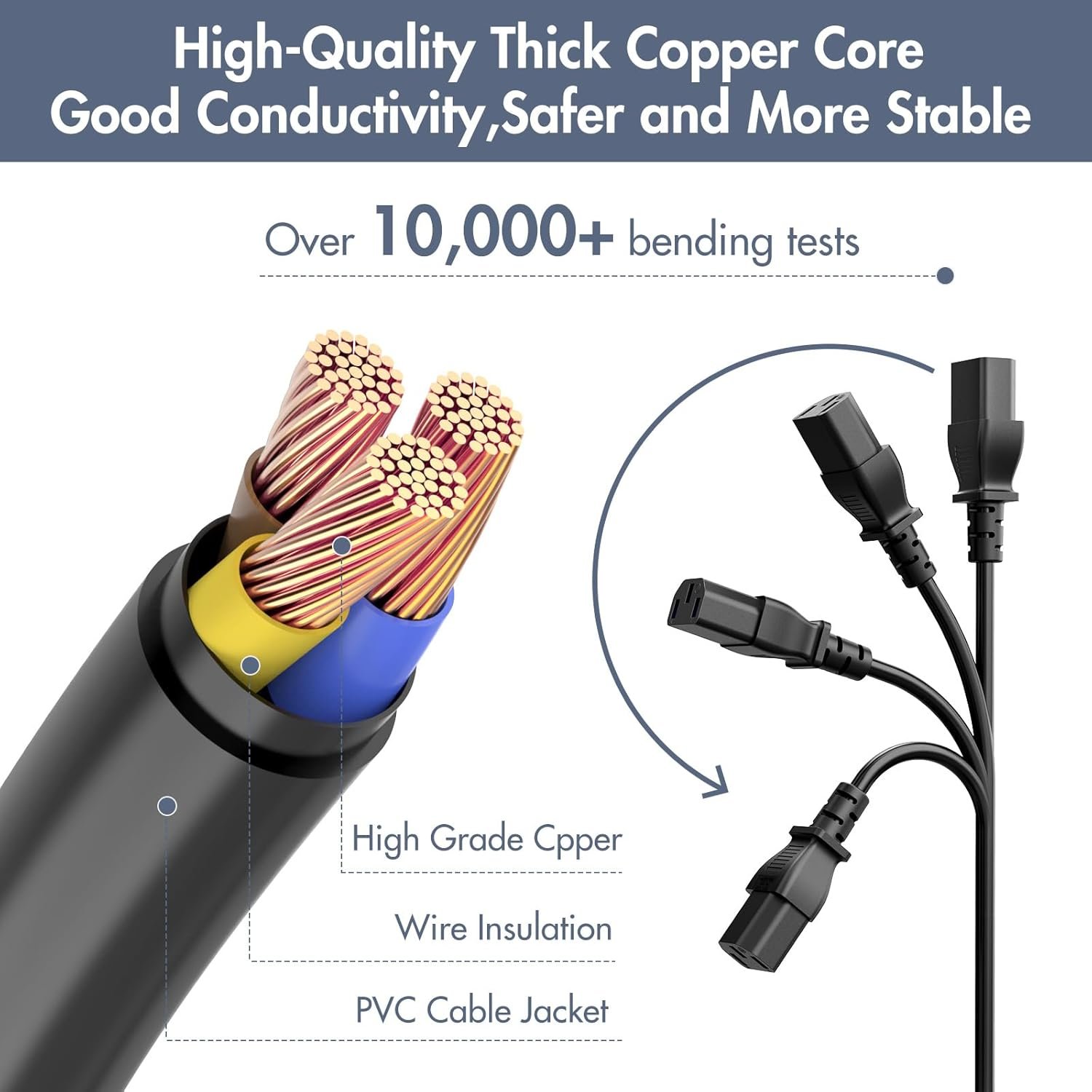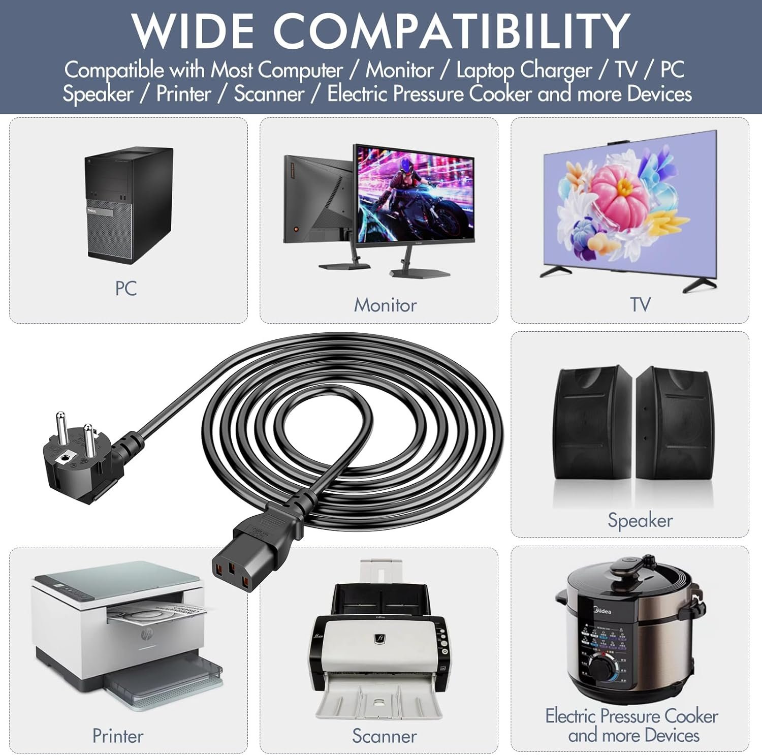 【Durable and well made PC power cable】Fully molded design for reliability, maximum safety, long lasting over 10000 bend tests in laboratory for maximum durability. Widely compatible with most brands of PC, Computer, Monitor, Screen, TV, Printer, Projector, Game Console, ION Pathfinder guitar amp speakers, Instant pot, race tape and other electronic devices that use a 3 pin power cable