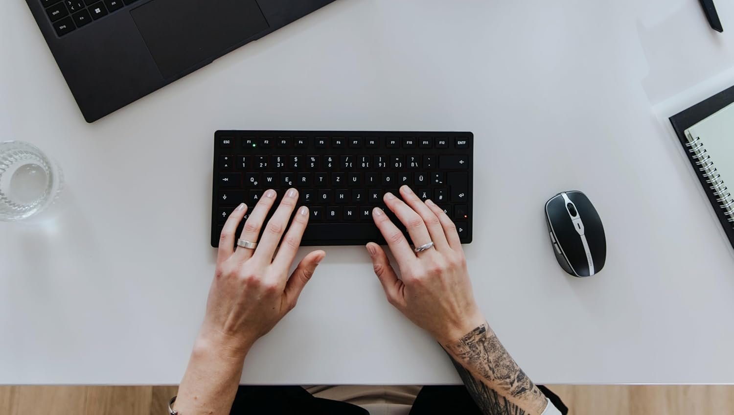 Rechargeable: Battery lasts for weeks and can be recharged during use via USB-C cable – a status LED provides information on low battery, charging status and resolution
