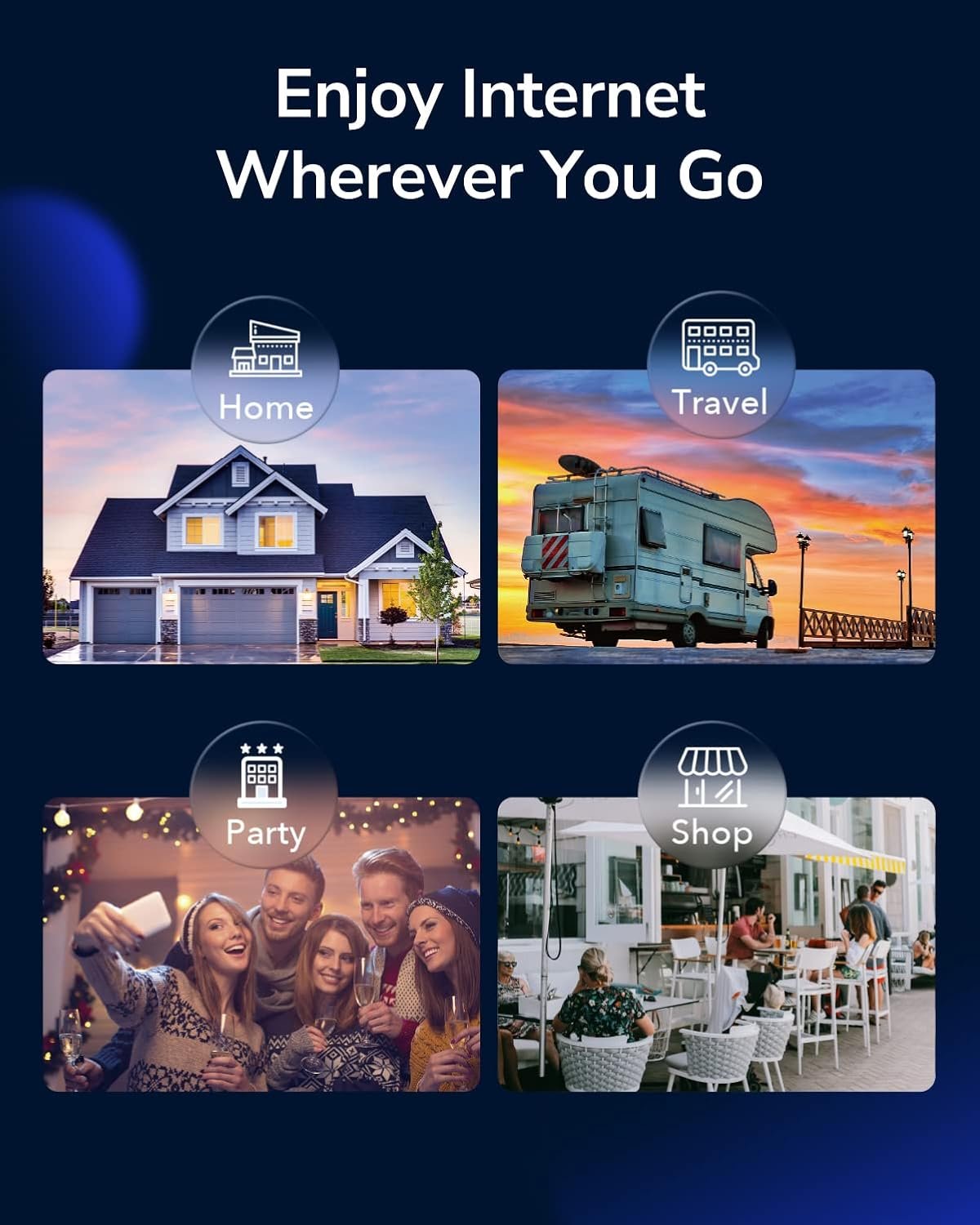 High gain antennas for better performance. 4 x 5dBi high-gain antennas increase the sensitivity of the router, improve the signal quality of 4G LTE and Wi-Fi, which is conducive to establishing a Wi-Fi connection at a longer distance.