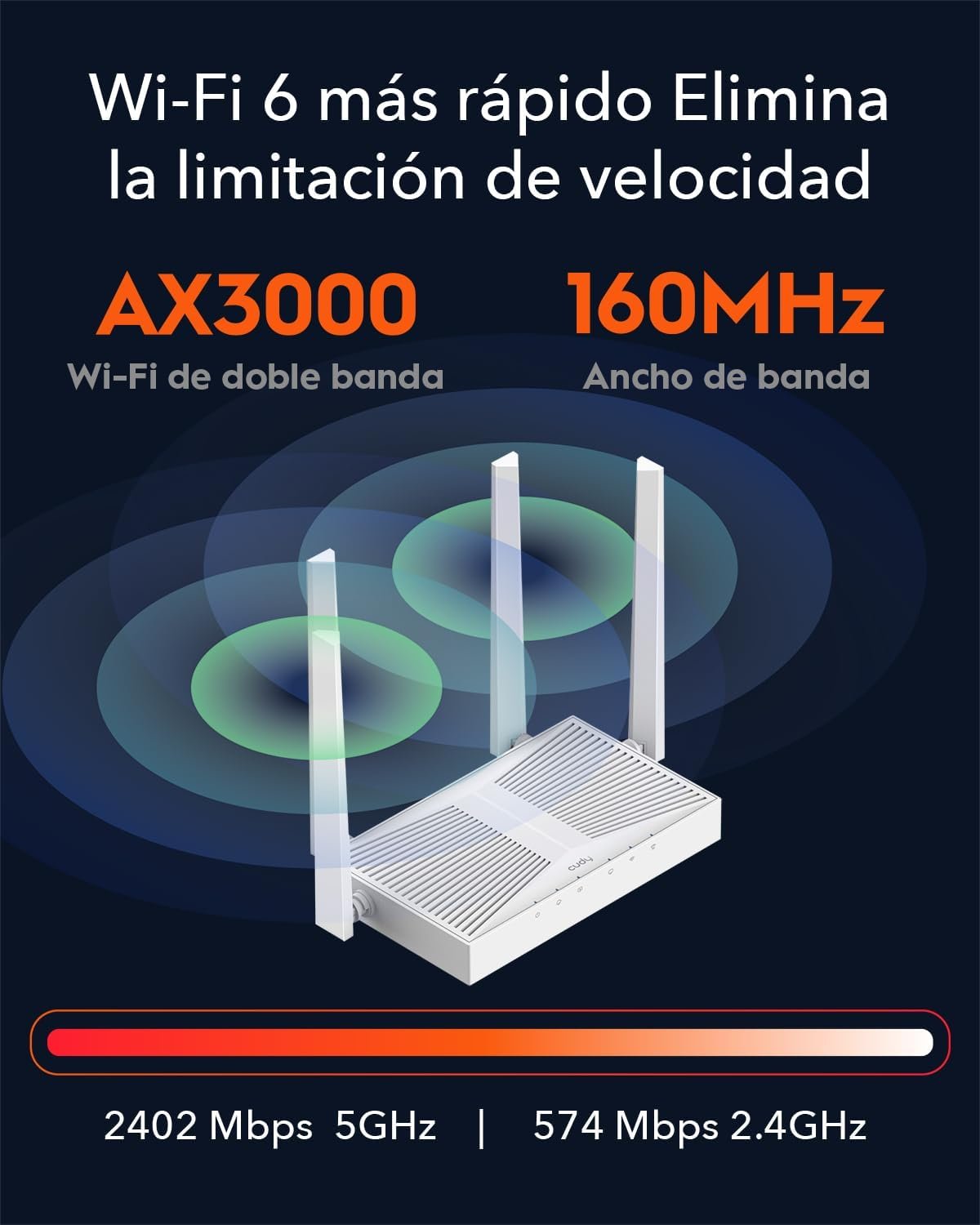 Equipado con Wi-Fi 6, WR3000 cuenta con el mayor ancho de banda de 160 MHz y 1024-QAM para alcanzar velocidades de hasta 3 Gbps, que es más de 2,5 veces más rápido que el enrutador WiFi AC 2×2 de última generación.