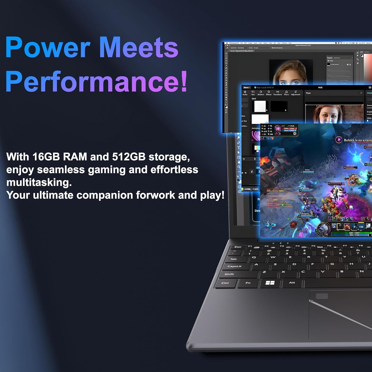 【Sufficient Storage Space】Laptop PC equipped with 16GB RAM and 512GB SSD, the laptop can read data and run faster when running multiple applications simultaneously. It offers fast and fast storage of documents, media files, and data, making it ideal for business laptops, school laptops or personal computers.