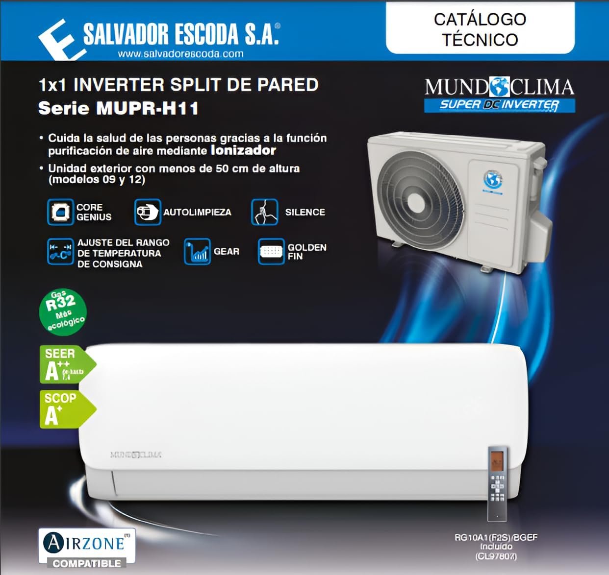 Inverter split air conditioner with R32 technology more efficient and environmentally friendly.