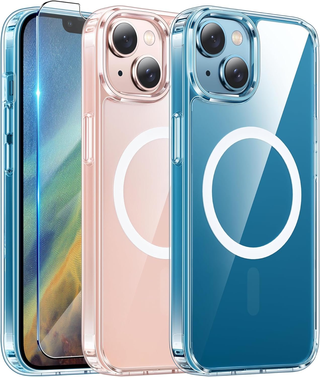 👍 CLEAR & NEVER YELLOW GLASS: The use of high-grade Bayer ultra-clear TPU and PC material, allowing you to admire the original sublime beauty for the iPhone 14/13, while not greasy when used. Nano antioxidant layer effectively resists stains and sweat, keeping the case clear like a diamond longer than others