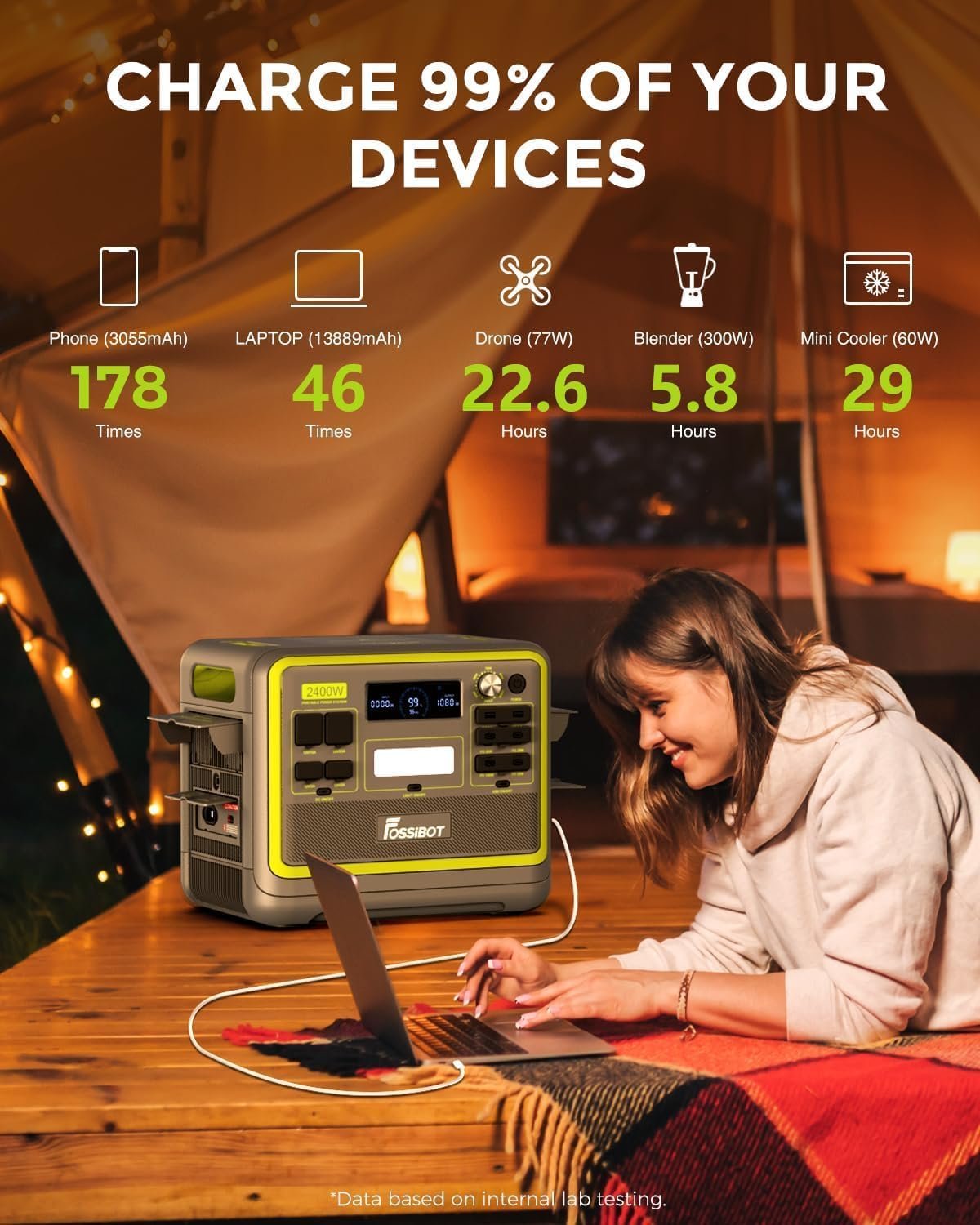 Premium Power & Durability: 2048Wh LiFePO4 battery + 2400W continuous output (4800W peak), 3000 charging cycles (80% residual capacity), powers appliances, tools and electronics without interruption.