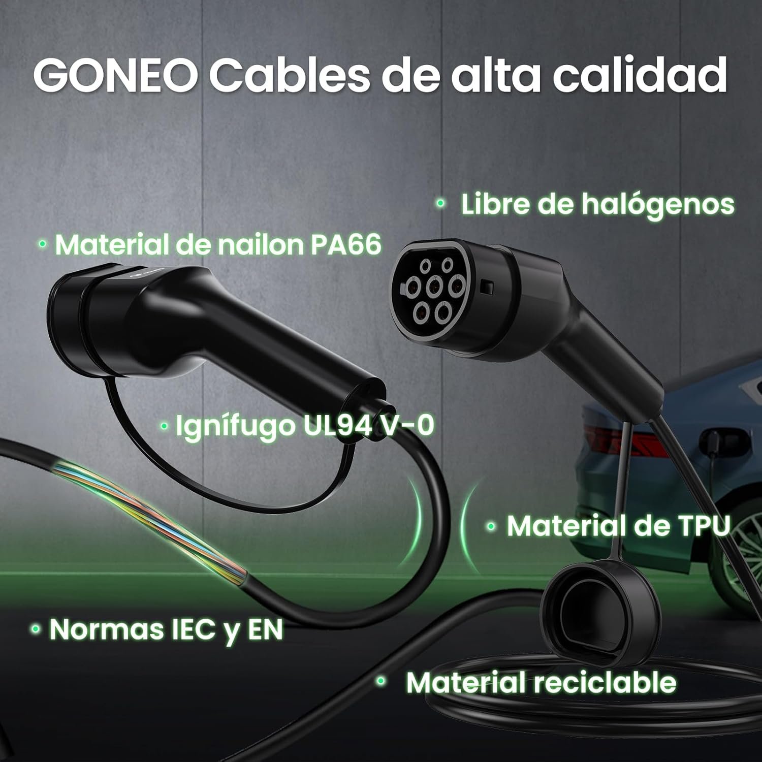 Designed for Europe: GONEO electric car cable type 2 compatible with type 2 and CCS2 electric vehicles as well as plug-in hybrid vehicles. Please confirm whether your vehicle’s charging port is type 2 (7 pins) or CCS 2 (7 pin + 2 pin). Not compatible with Type 1, CCS1, CHAdeMO or GB/T