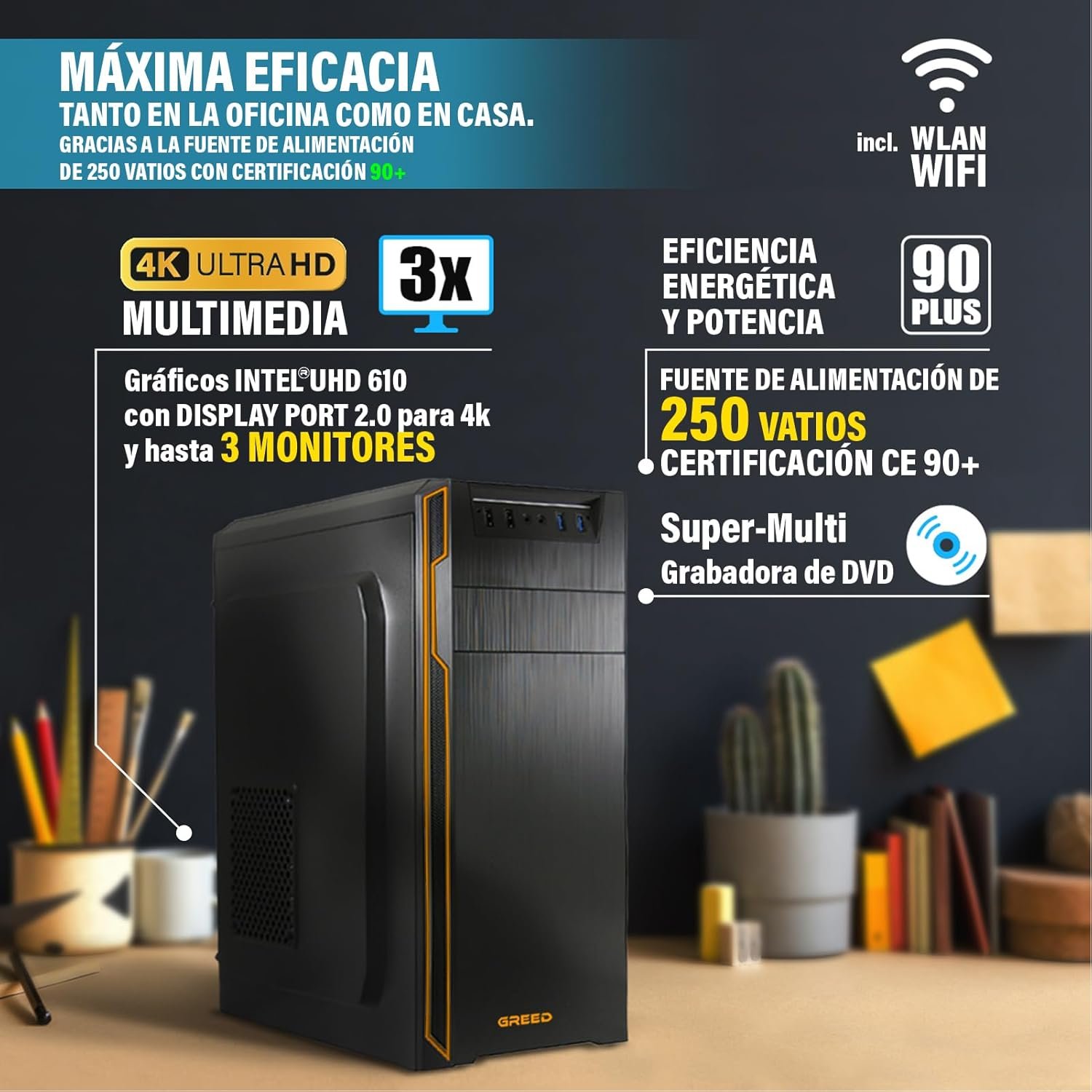 Quiet cooling Thanks to the quiet CPU cooler (processor) and quiet power supply, working with our office computer is fun again! Our comprehensive hardware is equipped with components such as WLAN and DVD burner and is therefore ideal for working from home, school, home office/homescooling, business and for children, teens and students.