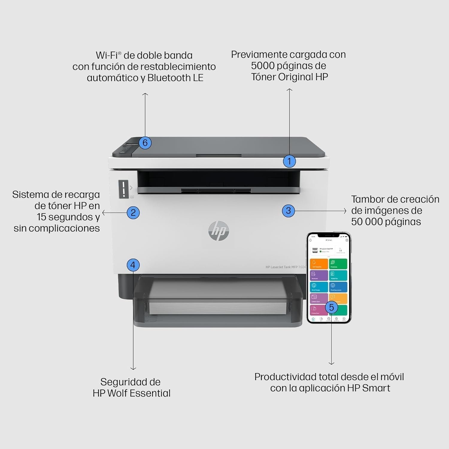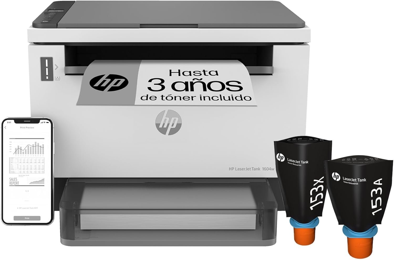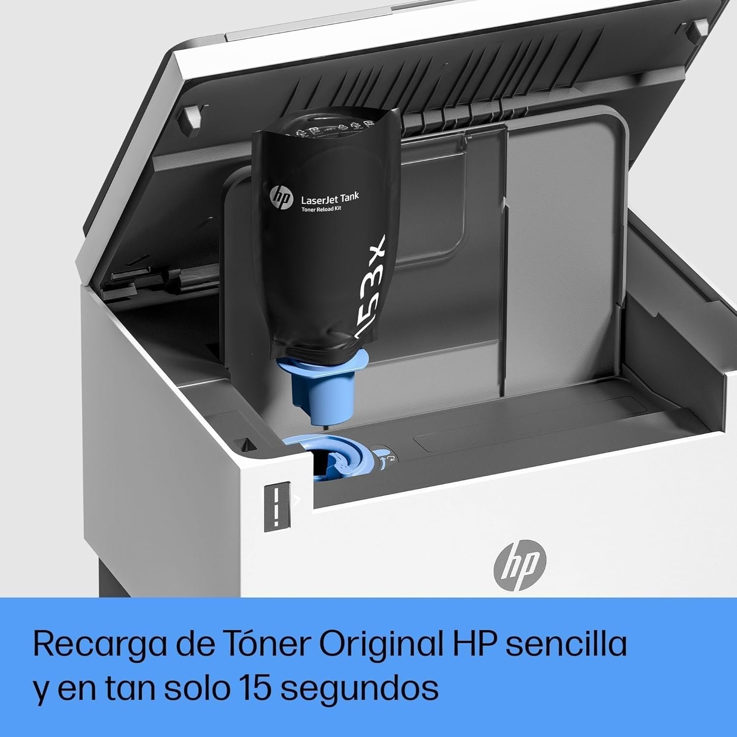 This printer is compatible with the Original HP 153A LaserJet Tank Black Toner Refill Kit (2,500 pages) W1530A, and the HP 153X LaserJet Tank Black Original Toner Refill Kit (5,000 pages) W1530X high-capacity