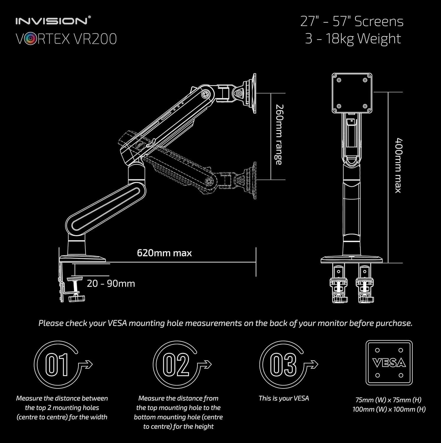 IMPROVED POSTURE – Say goodbye to discomfort with the Invision Vortex gaming monitor arm. Fully adjustable height, distance and angle allow you to achieve optimal monitor positioning, reducing neck, shoulder and back strain. Find new comfort and improved productivity, whether you’re working long hours or immersed in gaming sessions