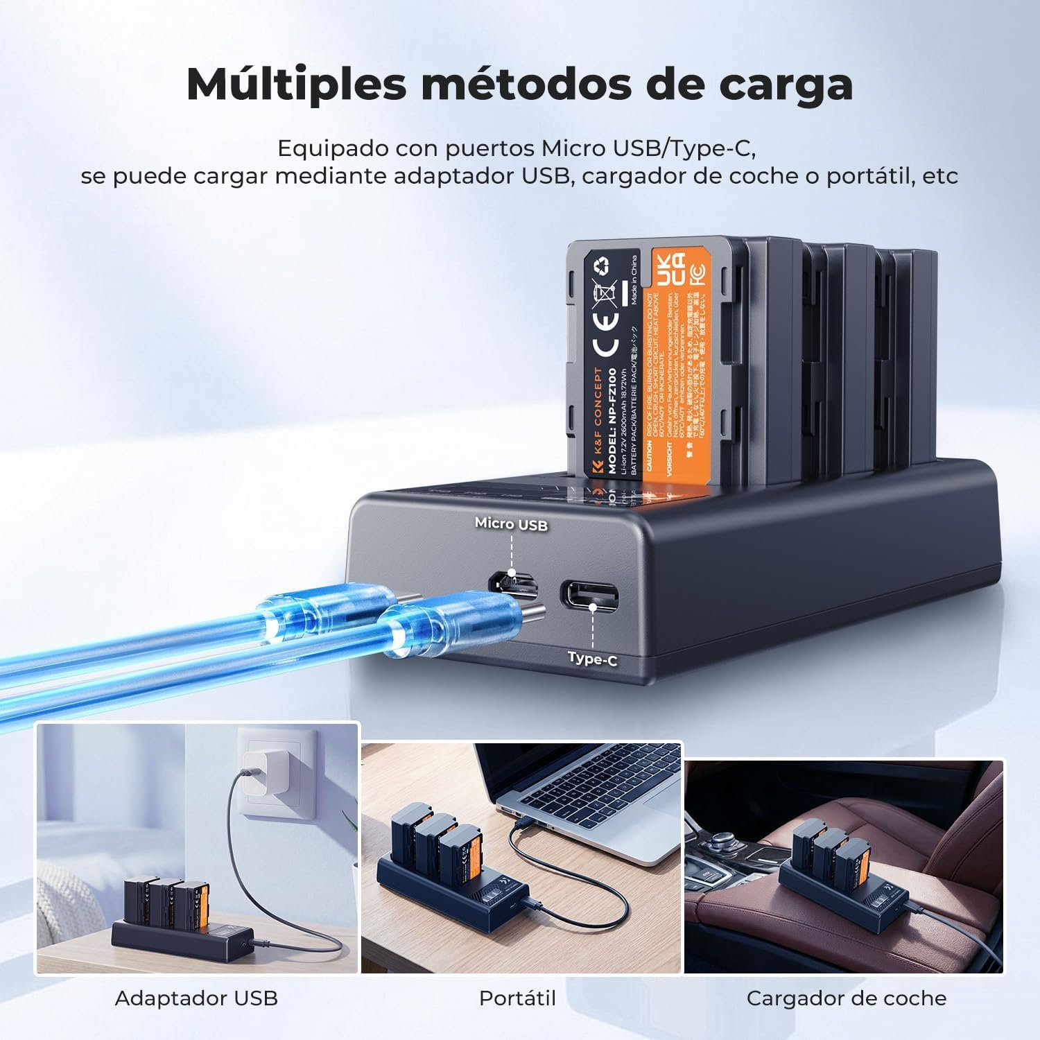 【Versatile Dual Input Charging】FX30 battery has Micro USB and Type-C ports (5V/2.1A), charges via wall charger, car adapter or power bank—flexible alpha 6000 battery for use anywhere with USB port.