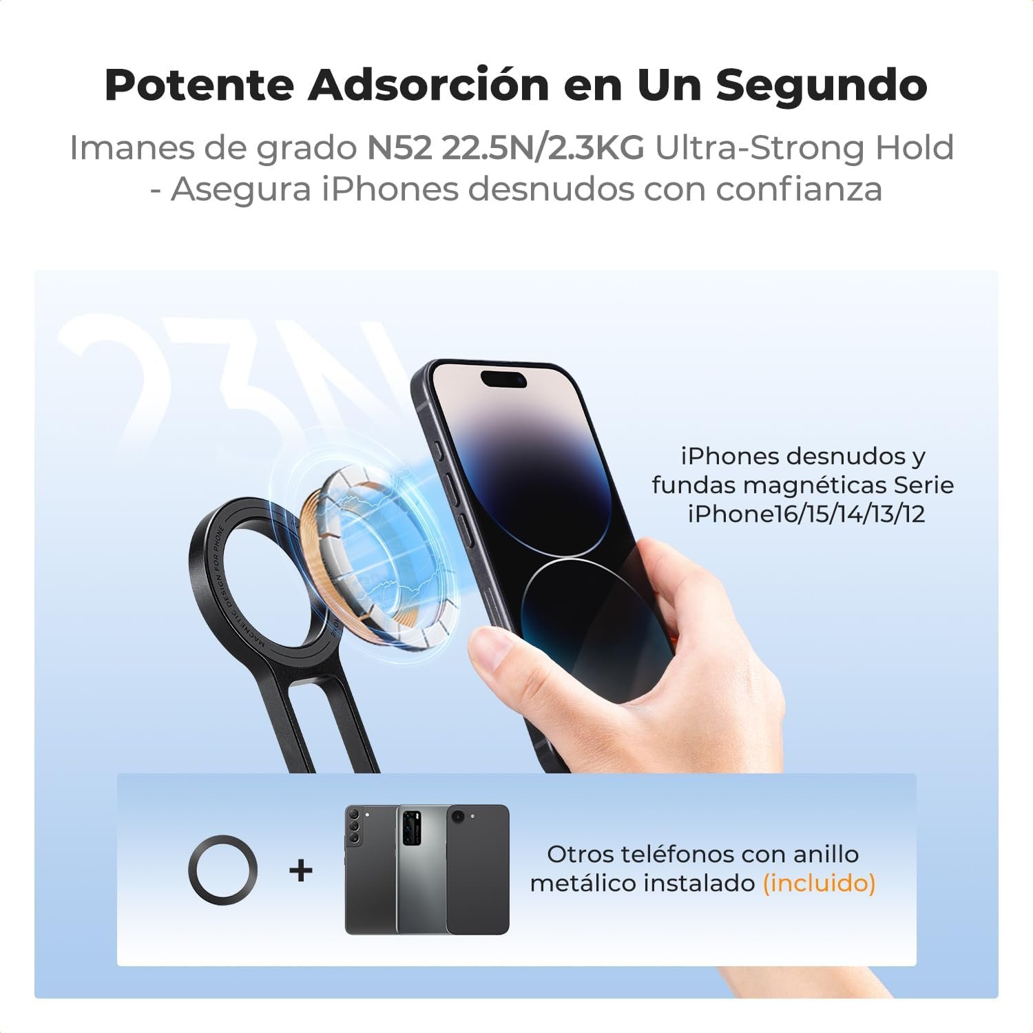 Widely Compatible: Compatible with mobile phones with Magsafe magnetic suction function (iPhone12 and above series can be used with bare phone), mobile phones without Magsafe magnetic suction function can be used with the magnetic suction case or stick the lead magnet sheet.