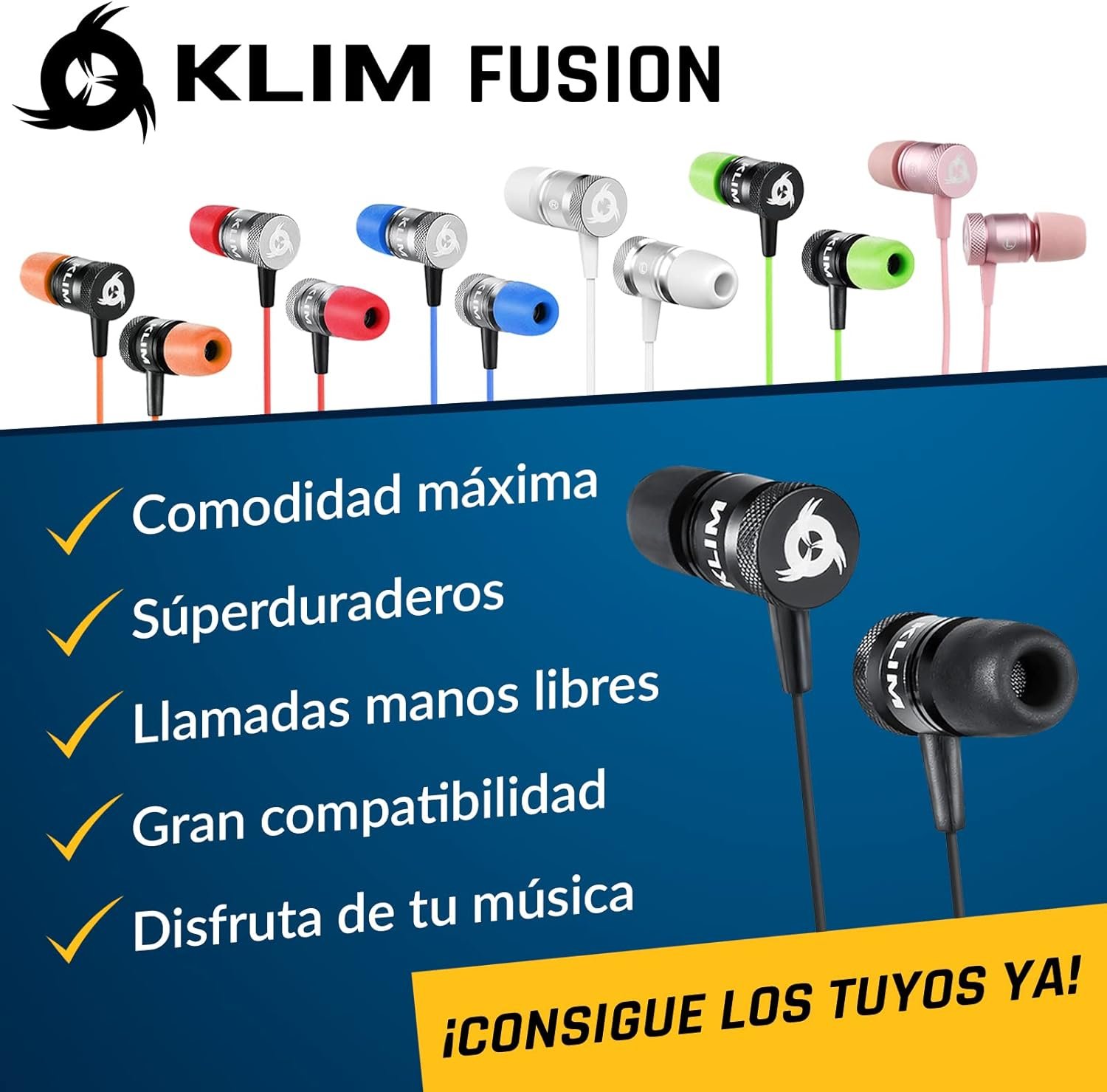 ✅FOAM WITH MEMORY The KLIM Fusion is an innovation and their memory foam earpads have a double advantage: 1) they are very comfortable and fit the ear perfectly and 2) completely block outside noise, so if you are one of those who use sports headphones for training, they will be ideal for you. Once in the ears, it’s just you and your music.
