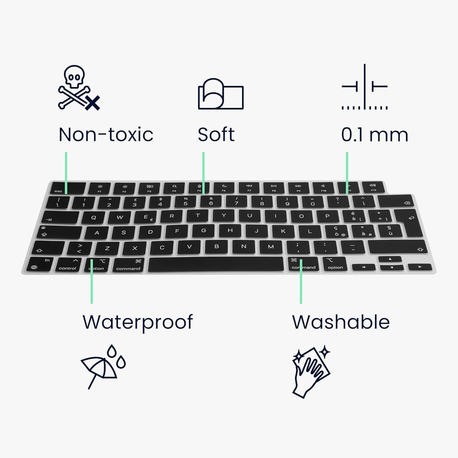 SPANISH KEYBOARDS: The protective cover is compatible with Spanish QWERTY keyboards. All keys are indicated so you can continue typing as usual.