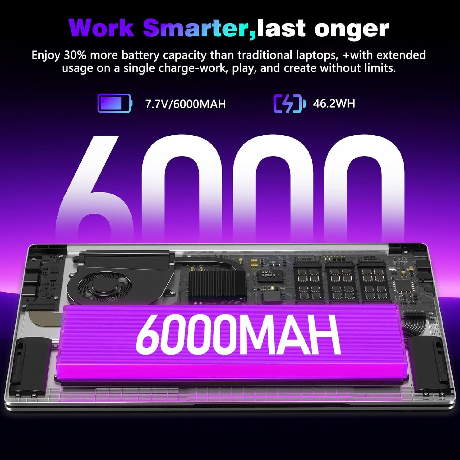 【Slim Metal Shell】Weighing only 1.6kg and a thickness of just 19mm, the slim CHIFUYOU metal shell combines impact resistance with durability for easy carrying. Its built-in high-capacity 6000mAh/46.2Wh battery offers extended battery life, while the plug-and-play design allows you to take full advantage of your performance, whether you’re working in the office, studying or enjoying mobile entertainment. The 180° flat tilt hinge makes it easy to exchange contents without interruption.