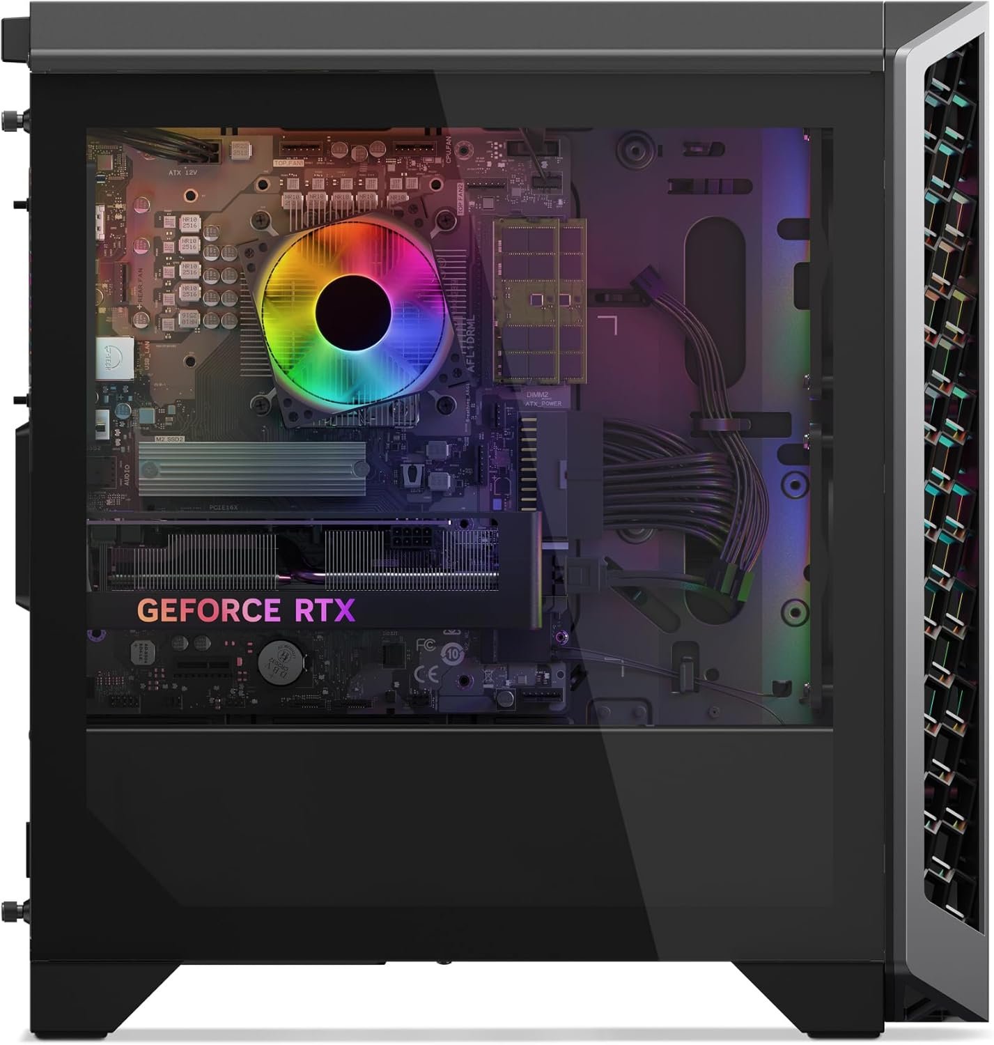 VENTILATION WITH STYLE: New design incorporates a transparent side panel that lets you show off its full power with RGB lighting; Ventilation integrates intelligently into the 3D texture and light bar, ensuring effective airflow without compromising elegance