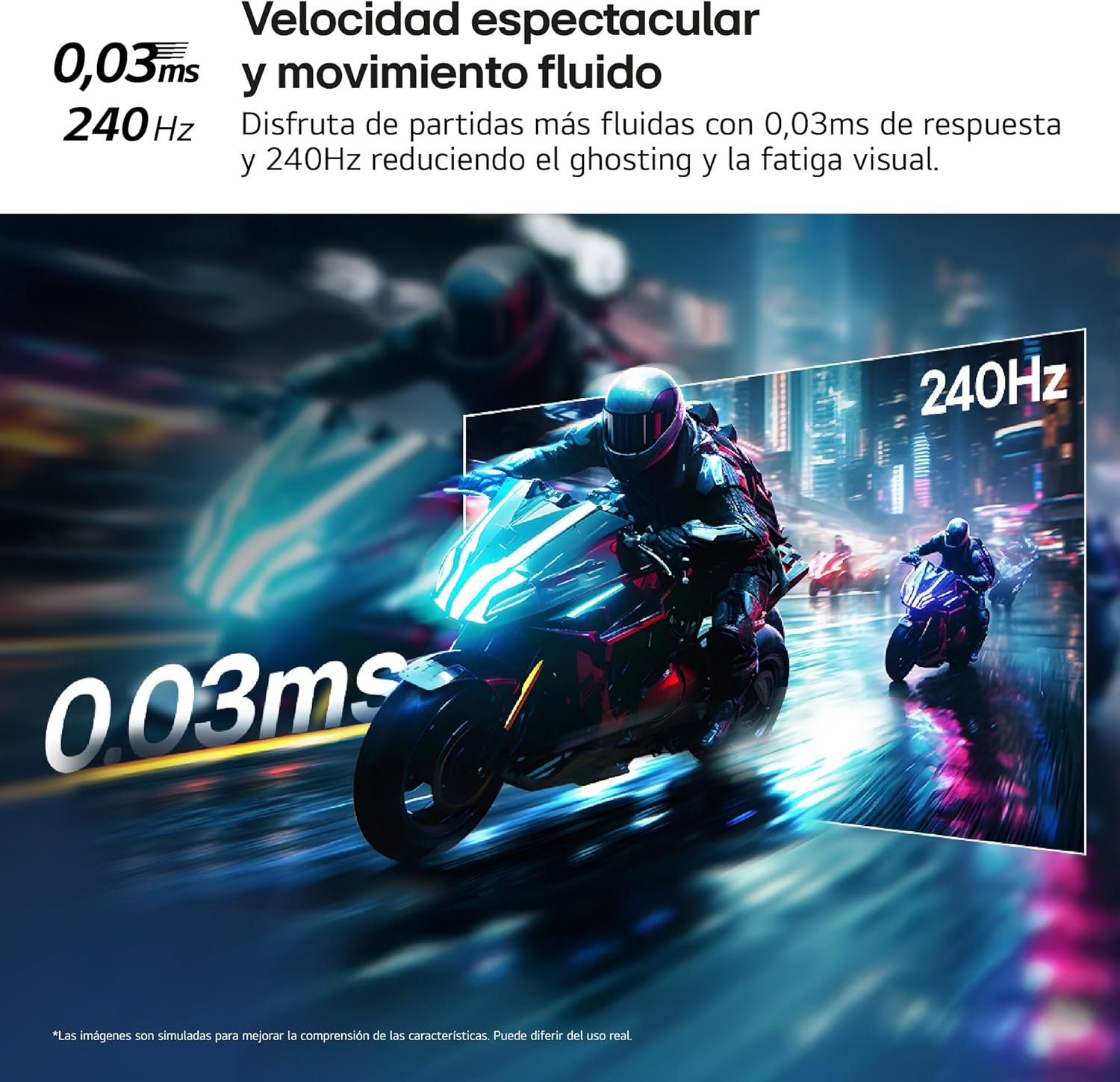 Extreme gaming performance: Enjoy the smooth OLED panel with 240Hz and 0.03ms (GtG), ideal for fast, accurate movements in your favorite games.
